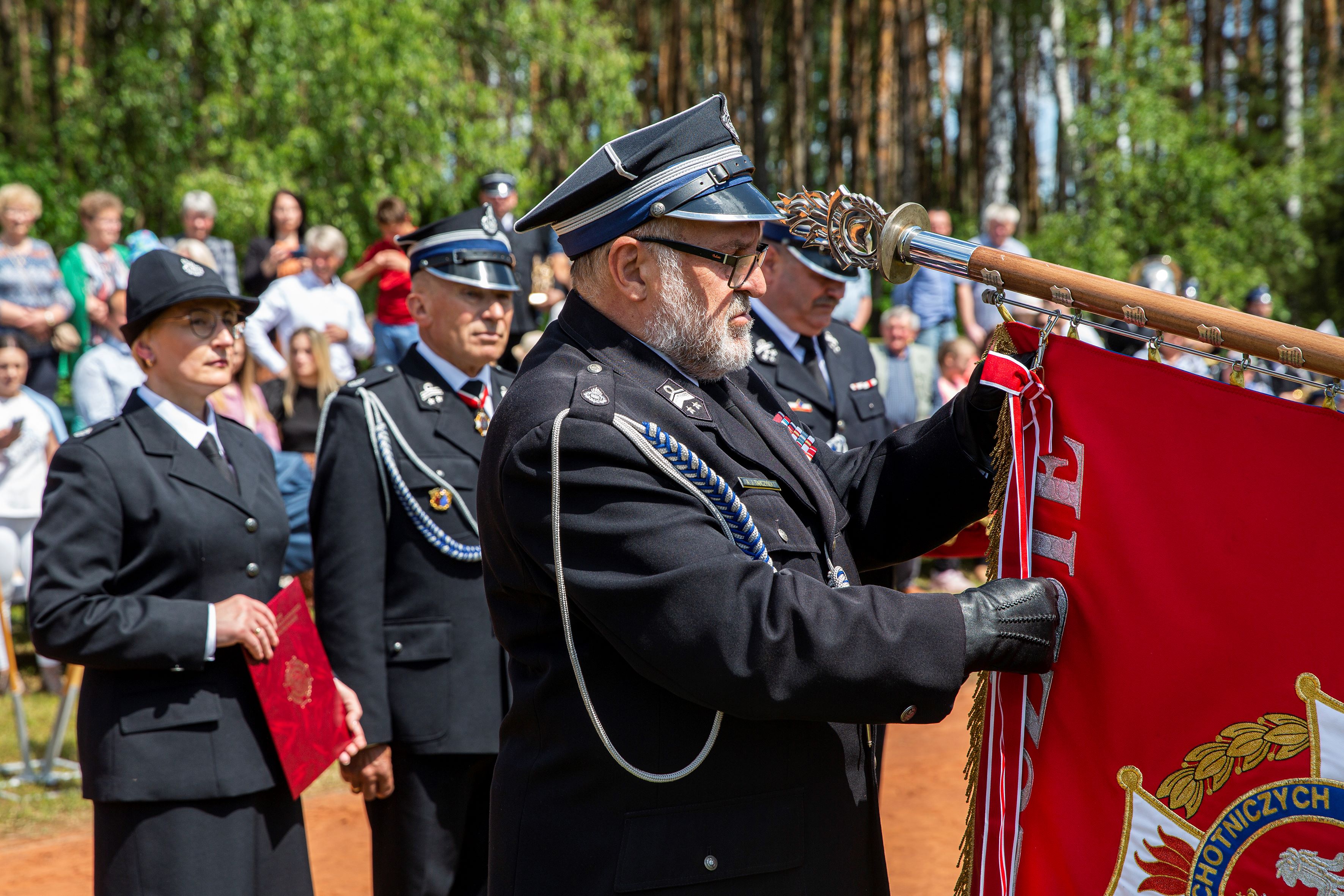 Meldunek o gotowości pododdziałów do uroczystości przyjął dh Antoni Jan Tarczyński, Prezes Zarządu Oddziału Wojewódzkiego Związku OSP RP woj. mazowieckiego.
