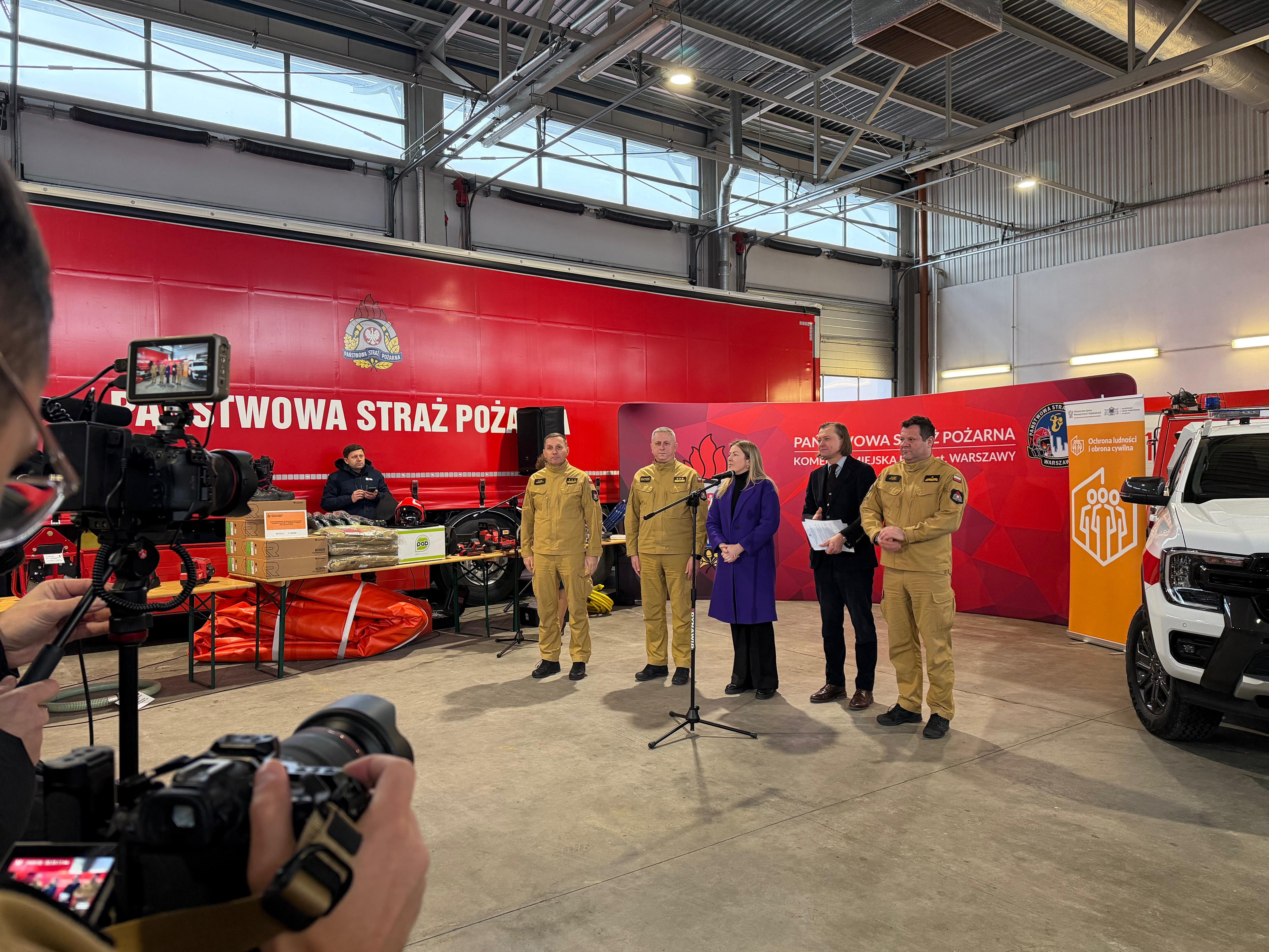 10 lutego 2026 roku na terenie Jednostki Ratowniczo-Gaśniczej nr 17 Komendy Miejskiej PSP w Warszawie odbyło się oficjalne przekazanie pojazdów, specjalistycznego sprzętu i wyposażenia do 13 jednostek organizacyjnych PSP z terenu województwa mazowieckiego.