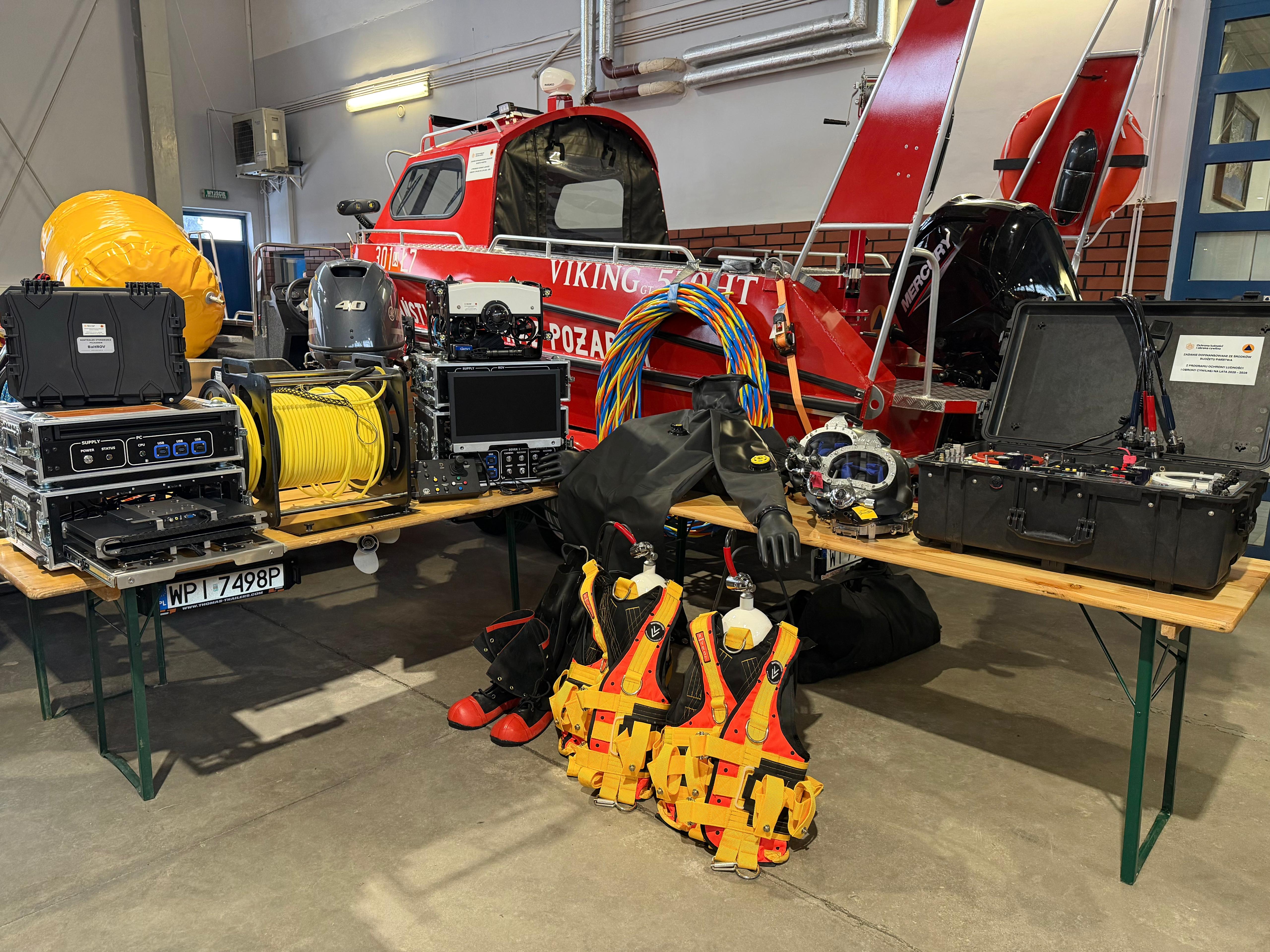 - łodzie ratownicze, w tym łódź sonarowa,