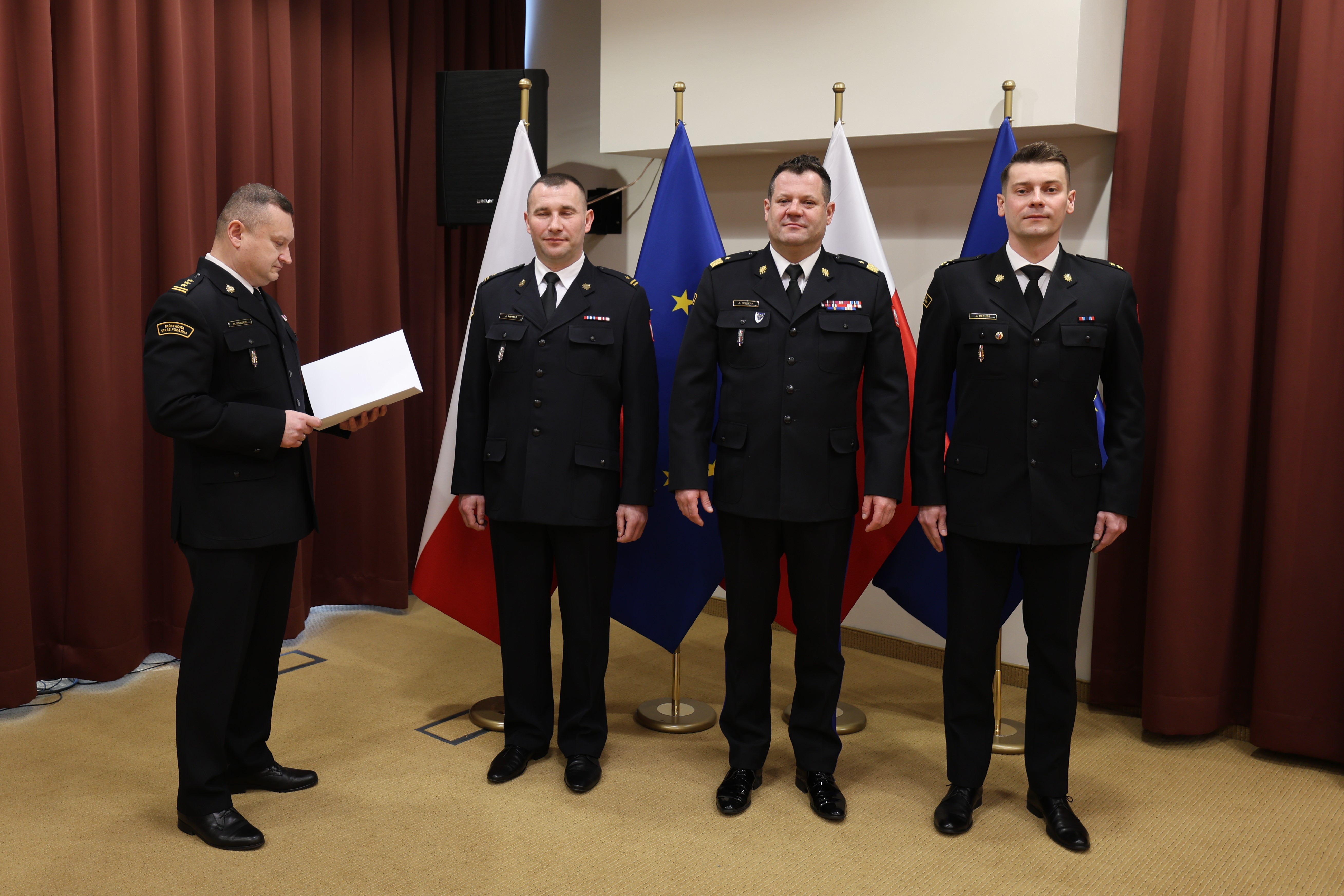 Następnie uroczyście powierzył mł. bryg. Krzysztofowi Pietrasowi pełnienie obowiązków służbowych na stanowisku Zastępcy Komendanta Powiatowego Państwowej Straży Pożarnej w Szydłowcu.