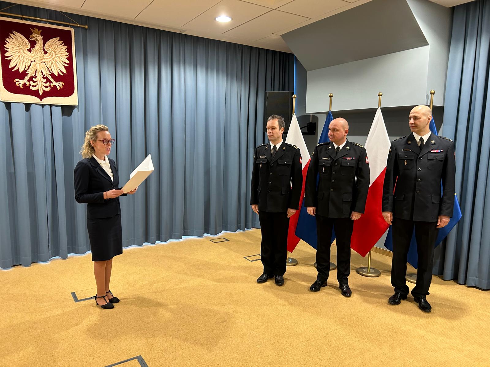 10 lutego 2025 roku w siedzibie Komendy Wojewódzkiej Państwowej Straży Pożarnej w Warszawie Zastępca Mazowieckiego Komendanta Wojewódzkiego PSP st. bryg. Maciej Bieńczyk uroczyście wręczył decyzję personalną Mazowieckiego Komendanta Wojewódzkiego w sprawie powierzenia z dniem 11 lutego 2025 roku pełnienia obowiązków na stanowisku Zastępcy Komendanta Powiatowego PSP w Sokołowie Podlaskim brygadierowi Grzegorzowi Kucowi.