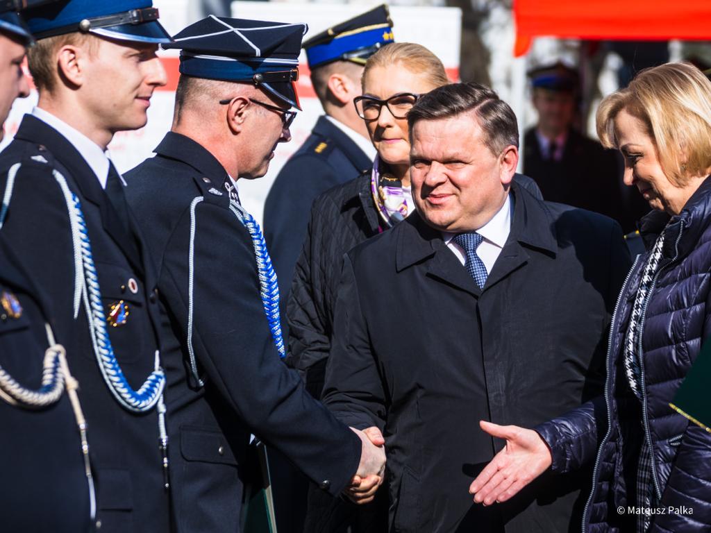 Zaproszeni goście gratulowali druhom pozyskania nowych samochodów oraz składali podziękowania za bezinteresowność w niesieniu pomocy drugiemu człowiekowi i sumienną pracę na rzecz bezpieczeństwa.