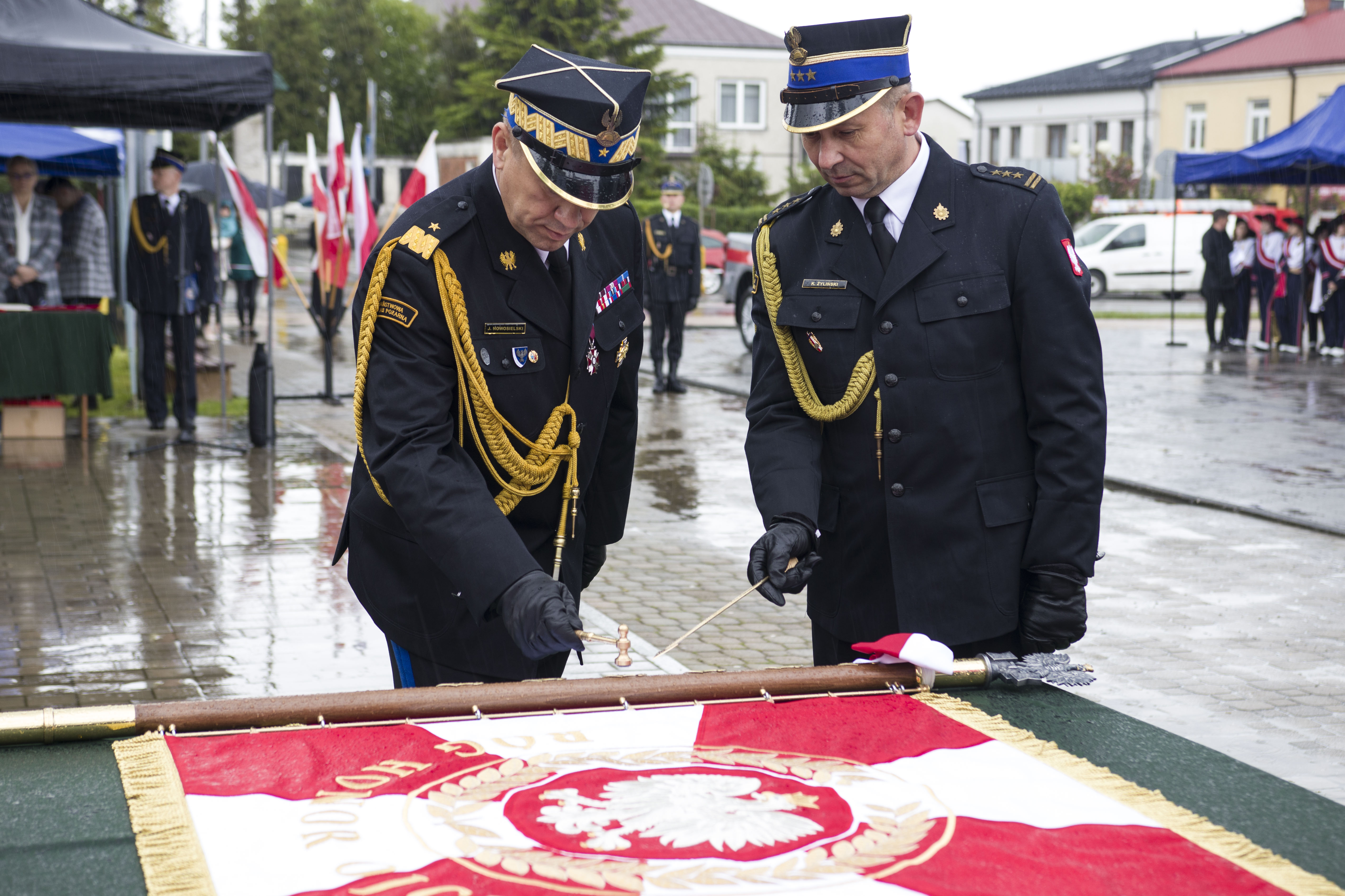 Powitania zaproszonych gości dokonał st. bryg. Paweł Potucha Komendant Powiatowy PSP w Zwoleniu. Głównym punktem uroczystości było przekazanie sztandaru Komendzie Powiatowej PSP w Zwoleniu. Nowy sztandar został poświęcony przez kapelana mazowieckich strażaków, a następnie goście honorowi wbili pamiątkowe gwoździe w jego drzewiec oraz wpisali się do księgi pamiątkowej. Po odczytaniu Aktu Nadania Sztandaru, Przewodniczący Społecznego Komitetu Ufundowania Sztandaru Arkadiusz Sulima Burmistrz Zwolenia, przekazał sztandar na ręce nadbryg. Jarosława Nowosielskiego Mazowieckiego Komendanta Wojewódzkiego PSP. W imieniu zwoleńskich strażaków sztandar przyjął Komendant Powiatowy PSP w Zwoleniu, który wręczył go pocztowi sztandarowemu. Poczet dokonał prezentacji sztandaru przed pododdziałami strażaków i zaproszonymi gośćmi.