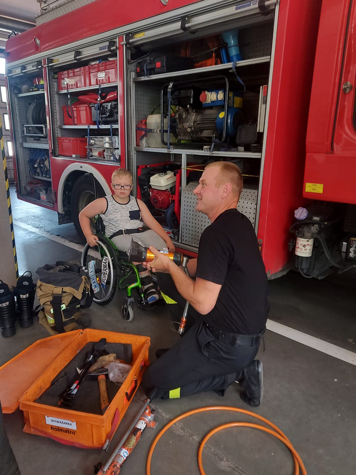 Poza spotkaniem z Kierownictwem Komendy Wojewódzkiej Państwowej Straży Pożarnej, dzięki uprzejmości funkcjonariuszy Jednostki Ratowniczo-Gaśniczej nr 9 Komendy Miejskiej PSP m. st. Warszawy Marcel miał okazję z bliska przyjrzeć się pracy strażaków. Mamy nadzieję, że wizyta w JRG 9 Komendy Miejskiej PSP m. st. Warszawy była dla Niego miłym rozpoczęciem wakacji.