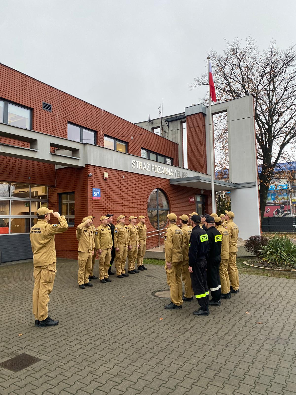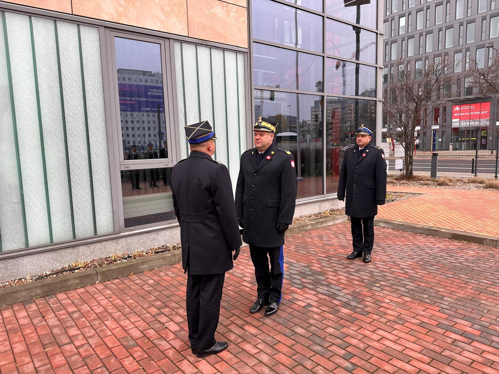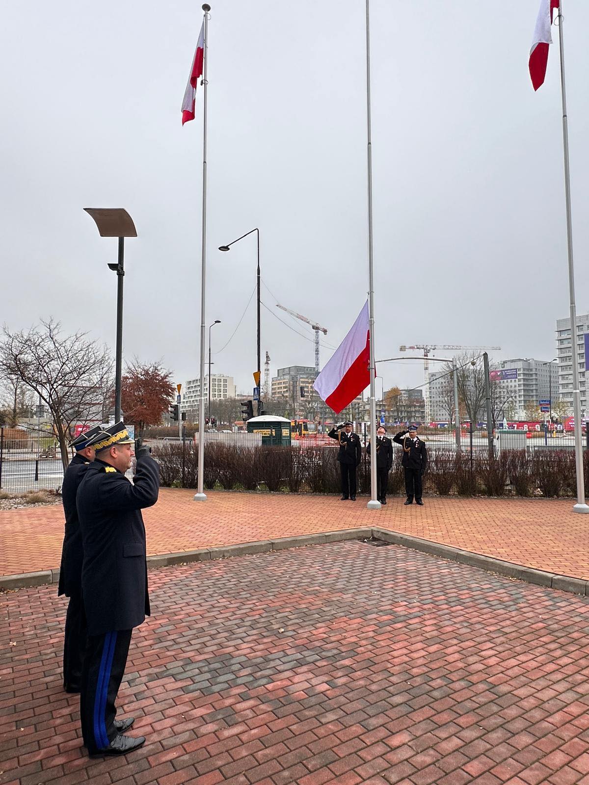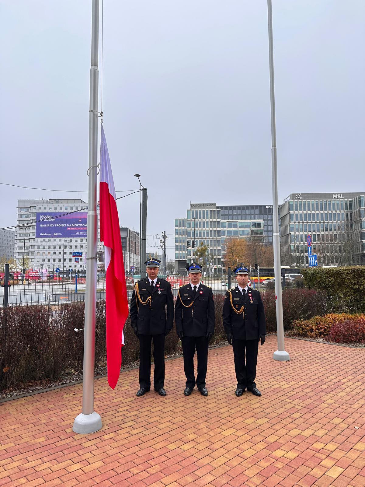 W uroczystym podniesieniu flagi państwowej w siedzibie Komendy Wojewódzkiej PSP w Warszawie uczestniczył Mazowiecki Komendant Wojewódzki PSP nadbryg. Artur Gonera wraz z zastępcą st. bryg. Maciejem Bieńczykiem, Naczelnik Wydziału Operacyjnego st. bryg. Artur Wójcik oraz strażacy z Komendy Wojewódzkiej PSP w Warszawie i Jednostki Ratowniczo-Gaśniczej nr 9 Komendy Miejskiej PSP m.st. Warszawy.
