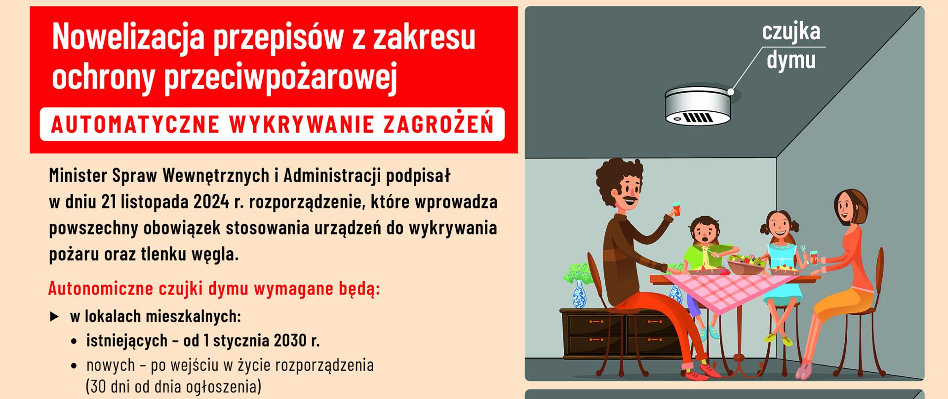W przypadku lokali mieszkalnych i ich pomieszczeń, w których odbywa się proces spalania paliwa stałego, ciekłego lub gazowego oraz użytkowanych jako takie lokale lub pomieszczenia w dniu wejścia w życie rozporządzenia, wymagania instalowania autonomicznych czujek dymu i autonomicznych czujek tlenku węgla obowiązywać mają od 1 stycznia 2030 r.