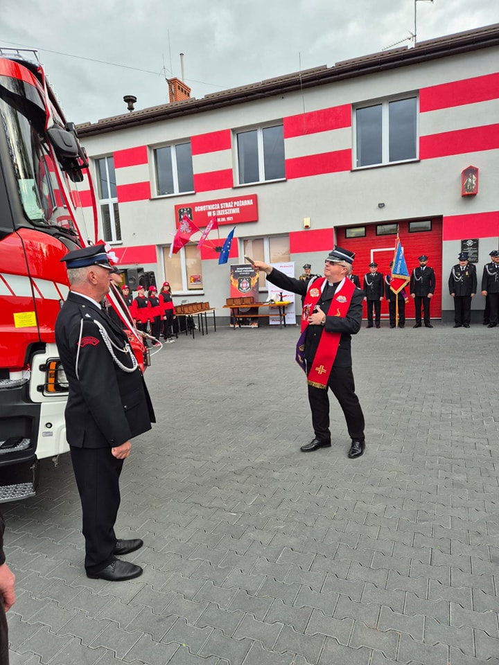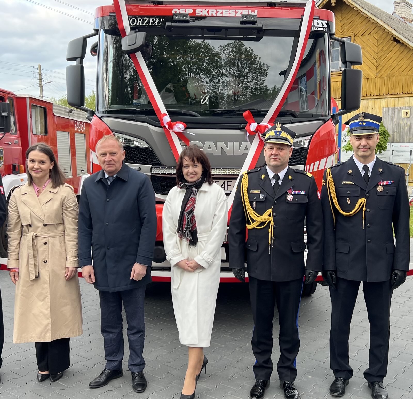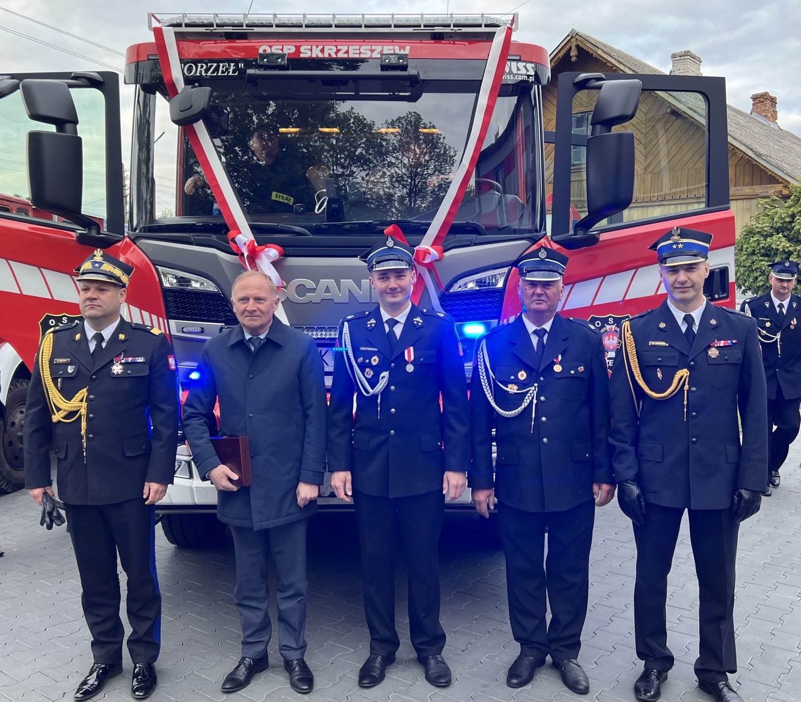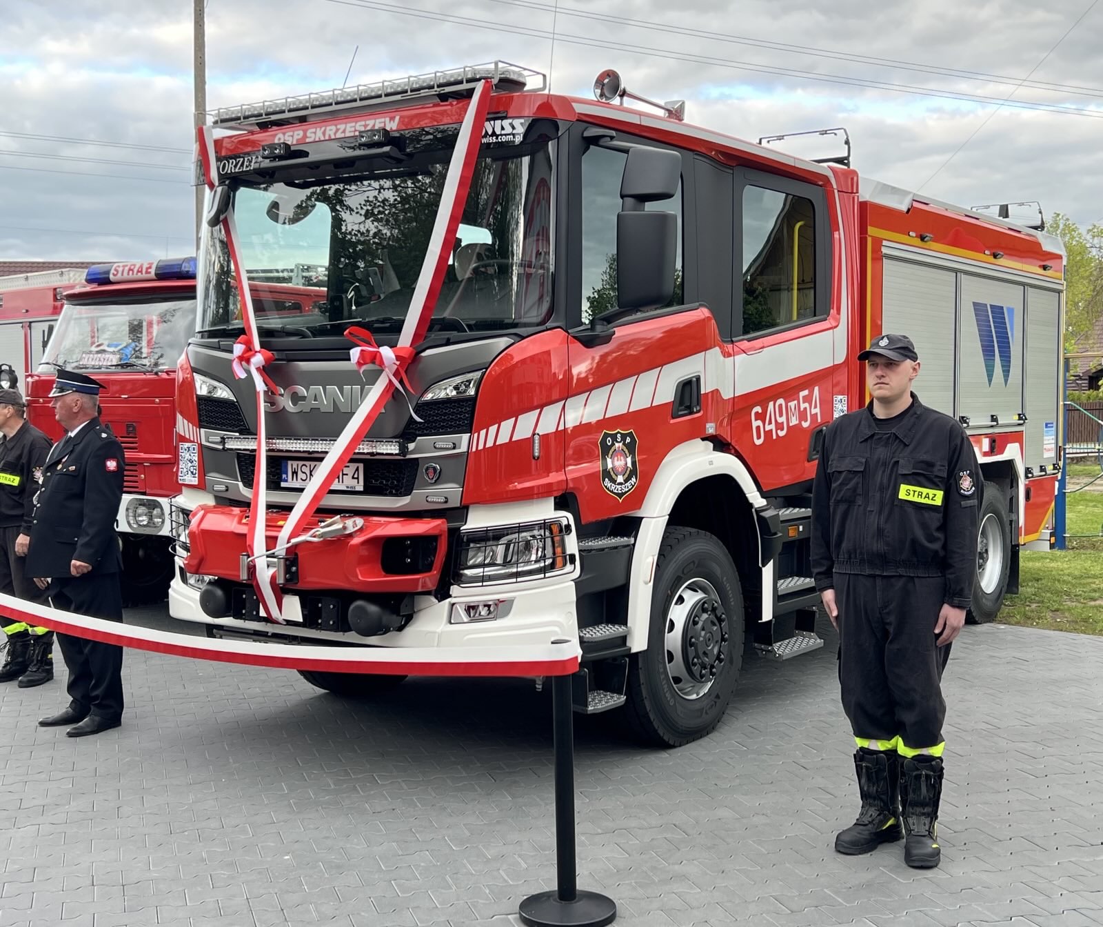 7 maja 2025 roku, podczas uroczystości na placu przed strażnicą OSP w Skrzeszewie (gmina Repki, powiat sokołowski) druhowie oficjalnie powitali i poświęcili nowy średni samochód ratowniczo-gaśniczy GBA 3/28/4,7 z wyposażeniem i zabudową firmy Wawrzaszek wykonaną na podwoziu SCANIA P360.