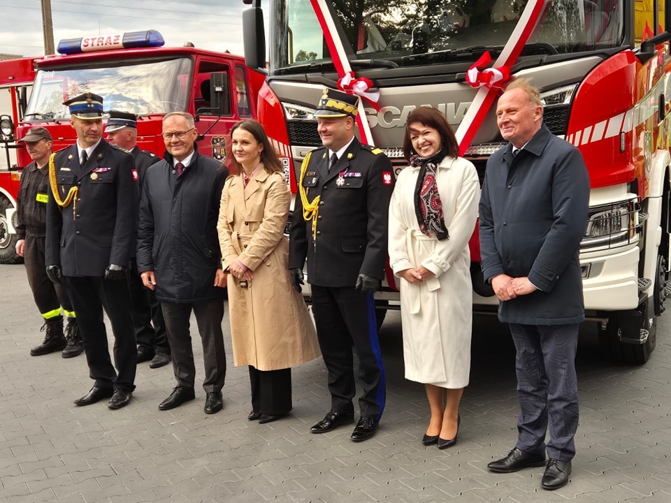 Kluczyki na ręce Prezesa OSP Skrzeszew dh Dariusza Jadczuka oraz kierowcy dh Szymona Jurczaka wręczyli:
