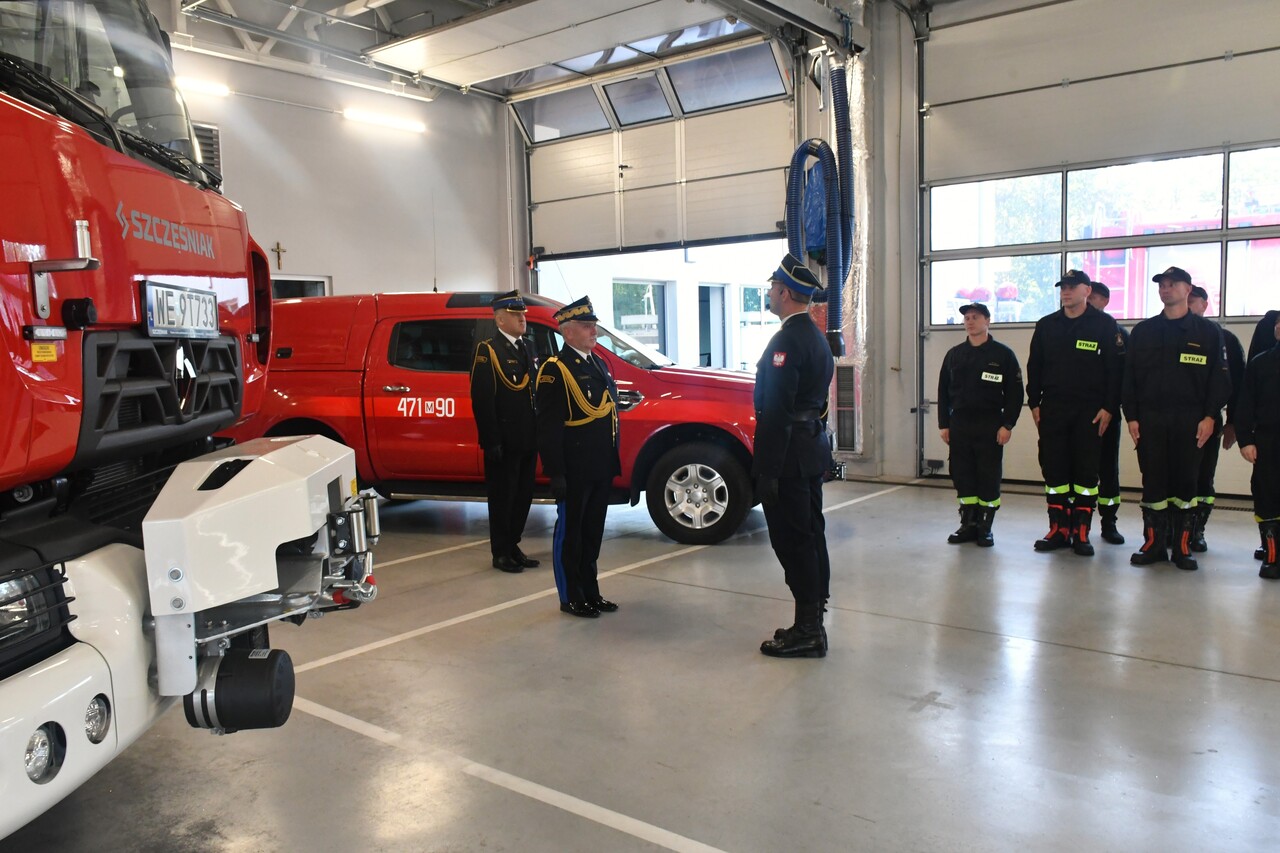 Uroczystego wręczenie aktu przekazania i kluczyków do nowego samochodu ratowniczo-gaśniczego dokonali: