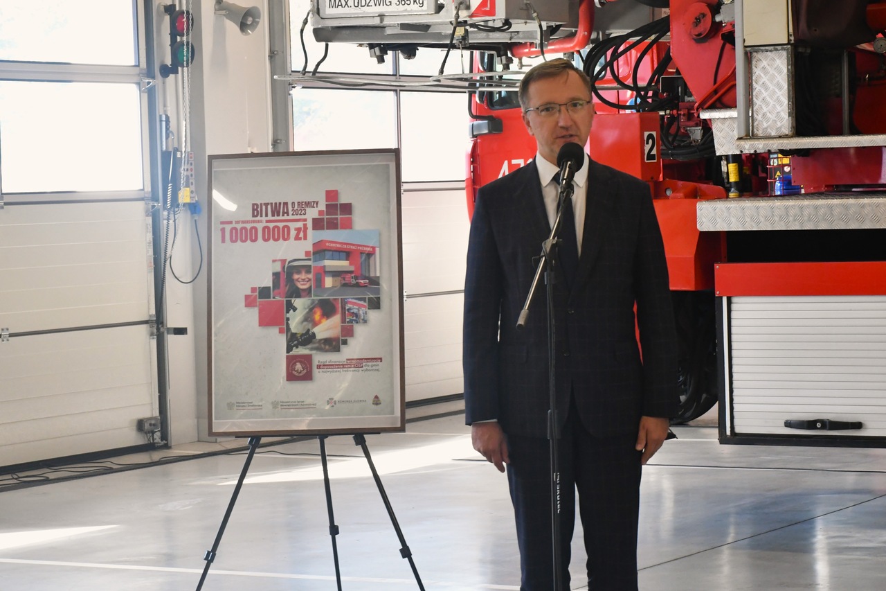 Po prezentacji wozu głos zabrali zaproszeni goście. Gratulowali pozyskania nowego pojazdu i dziękowali strażakom za ich ciężką pracę w utrzymanie bezpieczeństwa mieszkańców powiatu oraz całego województwa mazowieckiego. Podkreślali, że dzięki wsparciu rządowemu i samorządowemu zarówno Państwowa Straż Pożarna, jak i Ochotnicze Straże Pożarne nieustannie sie rozwijają. Strażacy są coraz lepiej przygotowani i doposażeni do radzenia sobie z wszelkimi wyzwaniami związanymi z pożarami i innymi zagrożeniami. Przekazywanie nowych samochodów ratowniczo-gaśniczych dla PSP i OSP to ważny krok w kierunku zwiększenia bezpieczeństwa naszych społeczności. Dzięki środkom z budżetu państwa, którymi dysponuje Komendant Główny PSP, dzięki środkom z NFOŚiGW oraz z samorządów terytorialnych, w ostatnich latach zakupiono rekordową ilość samochodów. To pokazuje, jaka jest moc i sprawczość oraz zaangażowanie.