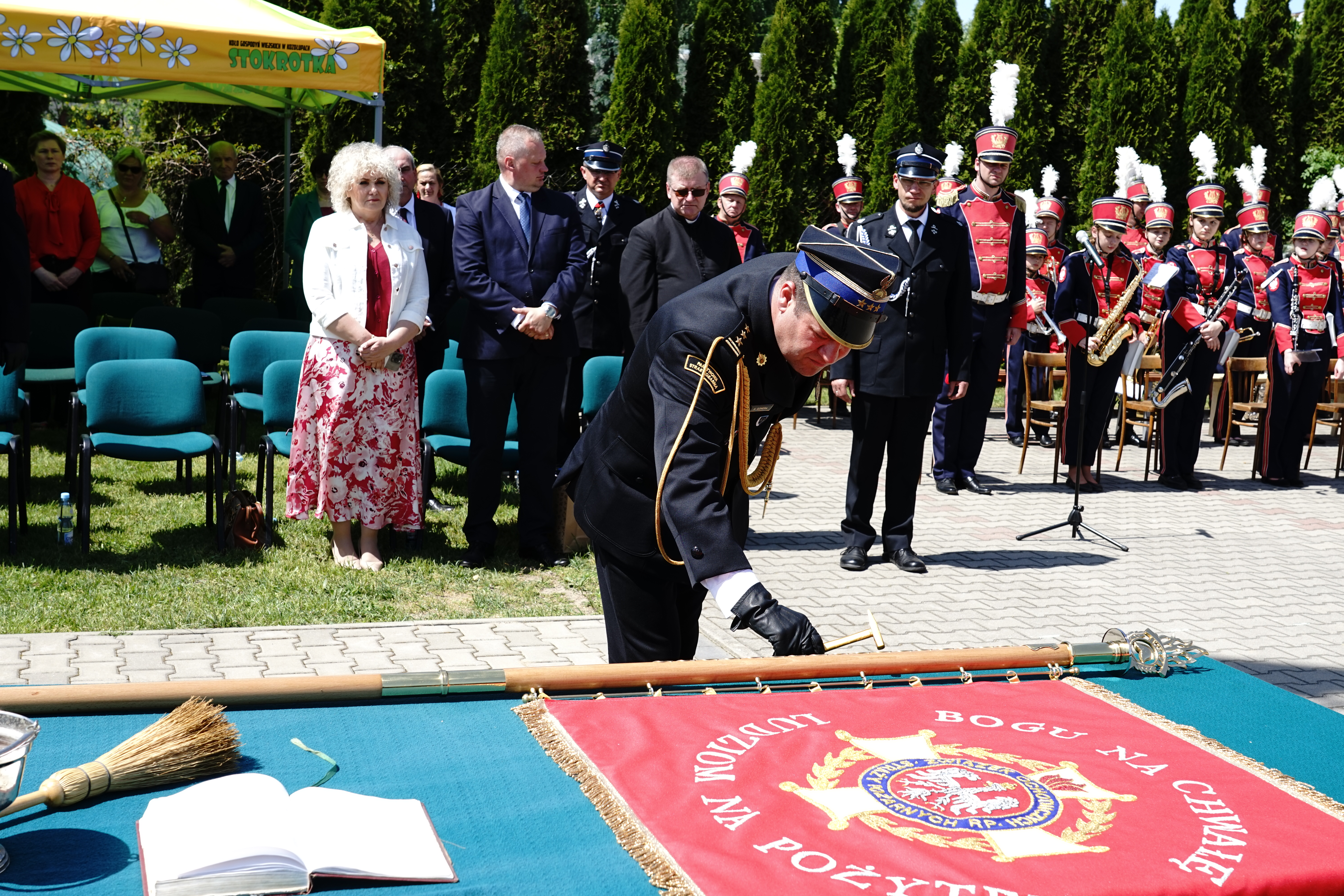 Po symbolicznym wbiciu gwoździ przez zaproszonych gości w drzewiec nowego sztandaru, został on poświęcony i wręczony przez Prezesa Oddziału Wojewódzkiego ZOSP RP Województwa Mazowieckiego dh Antoniego Tarczyńskiego - Prezesowi OSP Jartypory dh Maciejowi Korzuchowskiemu. Nowy sztandar został następnie przekazany pocztowi sztandarowemu. W dalszym etapie obchodów nastąpiło poświęcenie oraz odsłonięcie pamiątkowej tablicy.