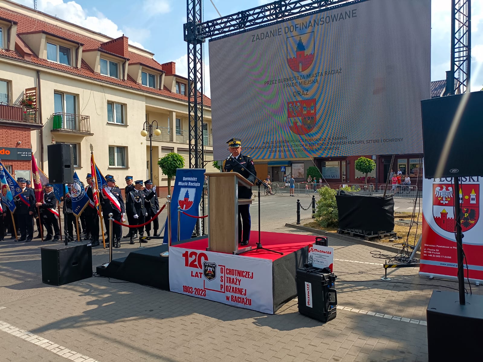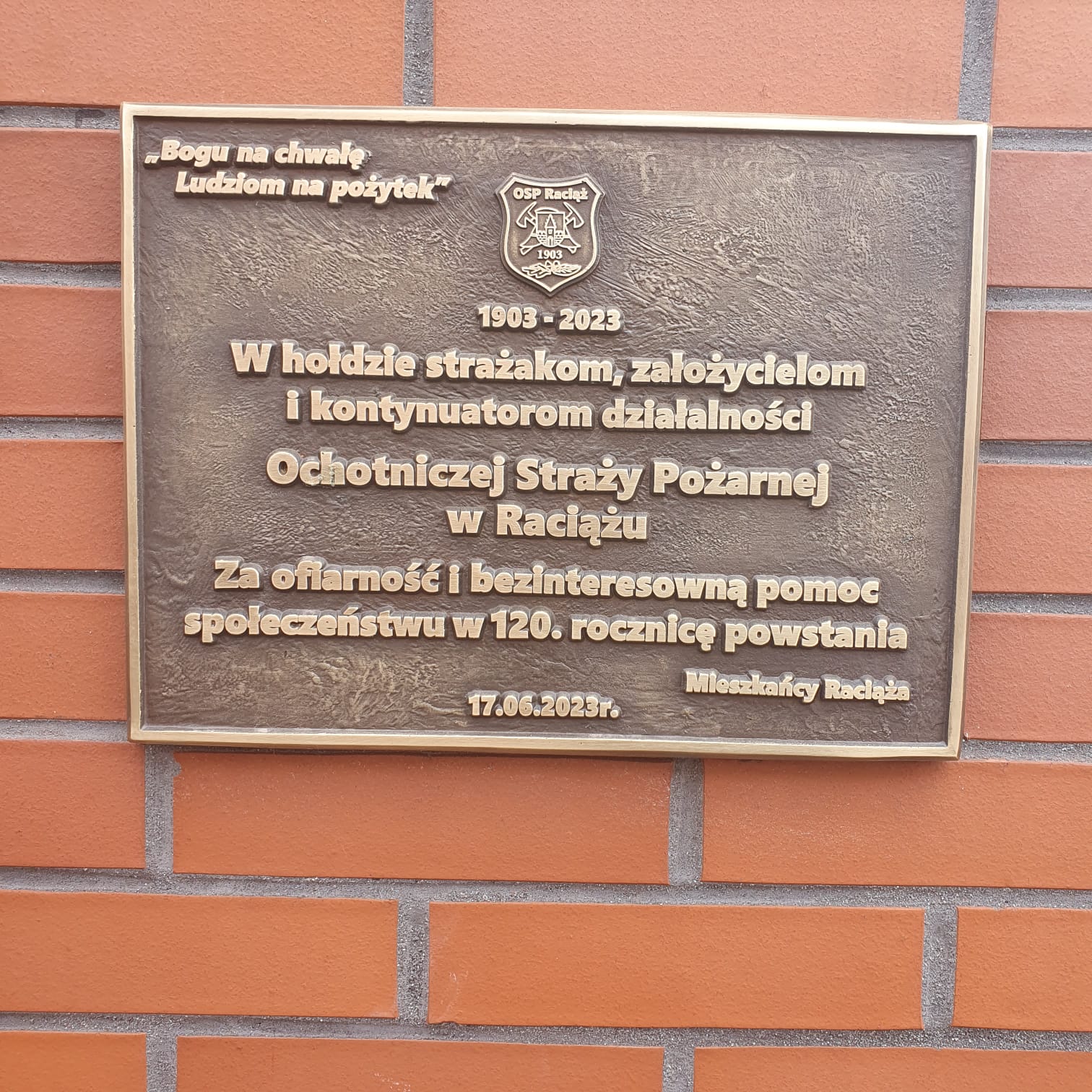 17 czerwca 2023 roku odbyła się uroczystość z okazji 120-lecia jednostki Ochotniczej Straży Pożarnej w Raciążu (powiat płoński). Obchody rozpoczęły się od złożenia meldunku Mazowieckiemu Komendantowi Wojewódzkiemu PSP nadbryg. Jarosławowi Piotrowskiemu, po czym odegrano hymn narodowy oraz podniesiono flagę państwową.