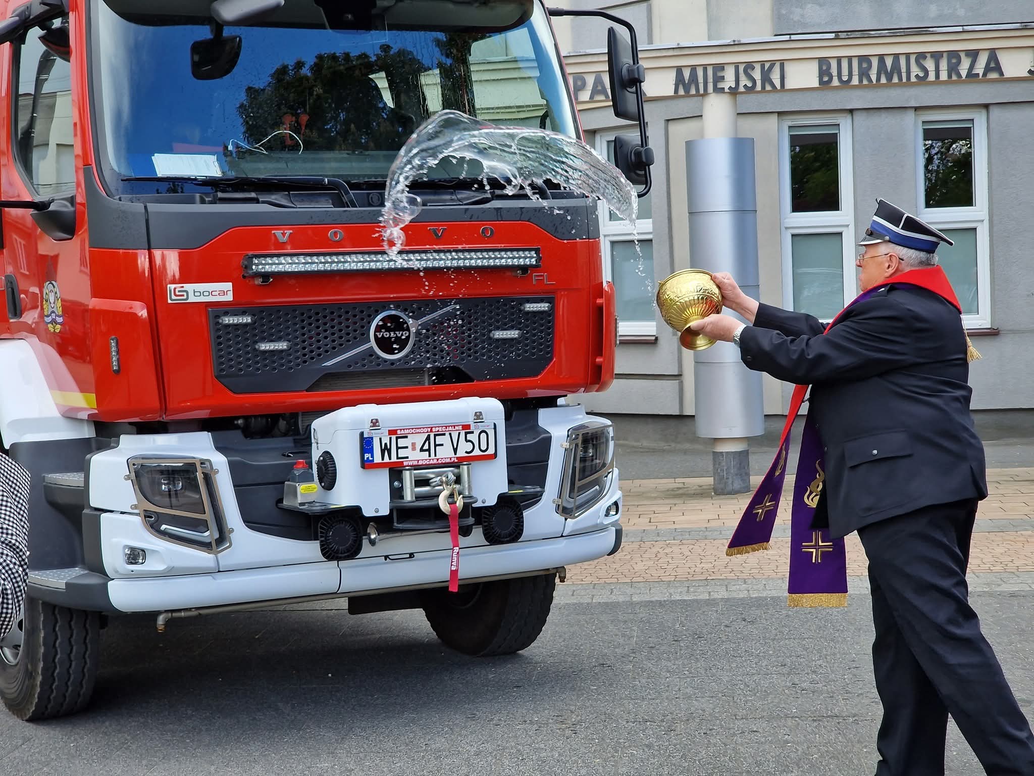 Po wręczeniu awansów, odznaczeń i dyplomów, odbyło się uroczyste przekazanie średniego samochodu ratowniczo – gaśniczego GBA-Rt 3.2/16 na podwoziu VOLVO zakupionego w listopadzie 2024 roku, który zwiększył potencjał ratowniczy powiatu żuromińskiego.