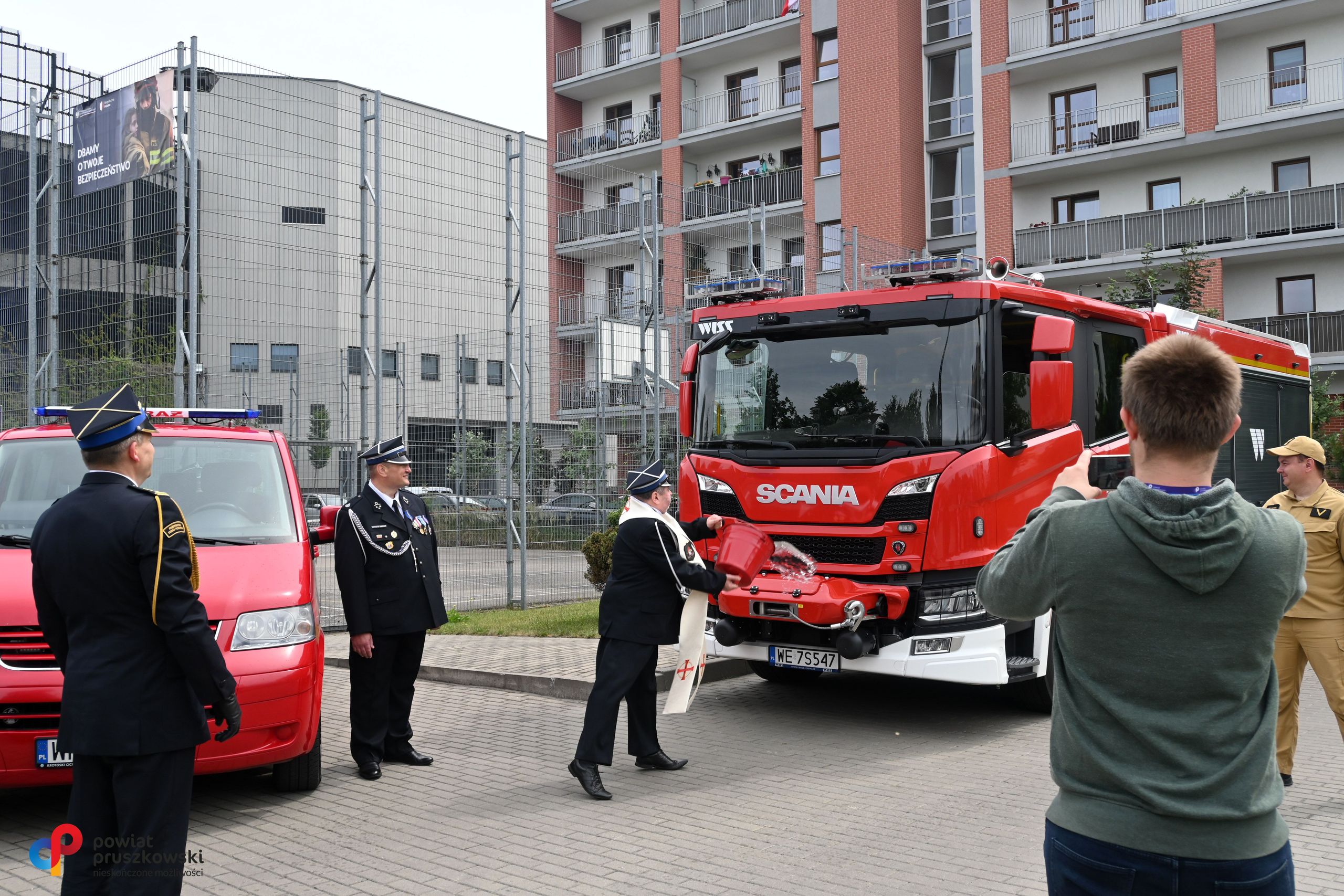 - poświęcenia w/w pojazdów oraz użytkowanego od początku roku w JRG PSP Pruszków - ciężkiego samochodu ratowniczo-gaśniczego GCBA 5/32 Scania,