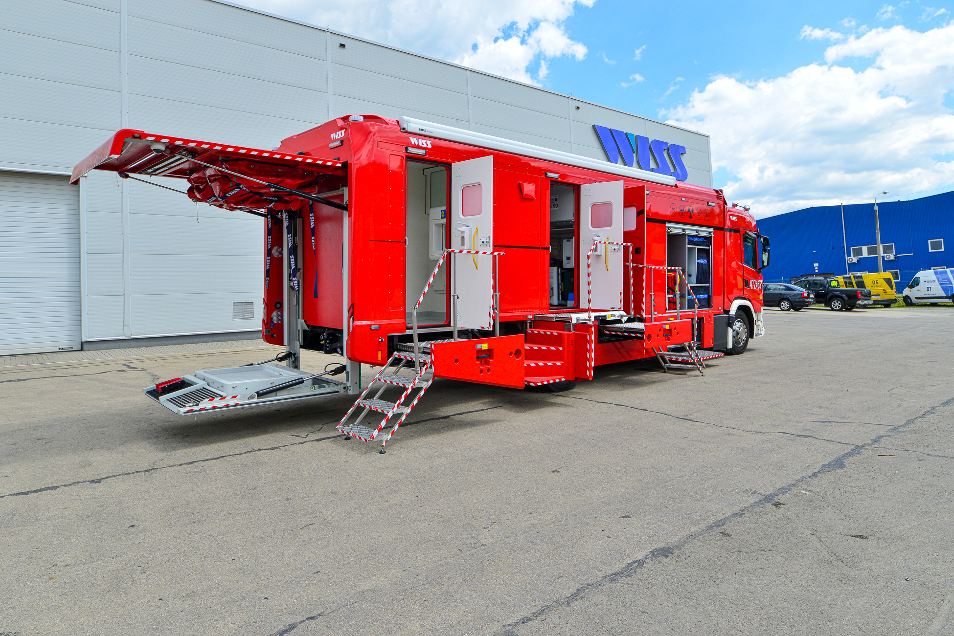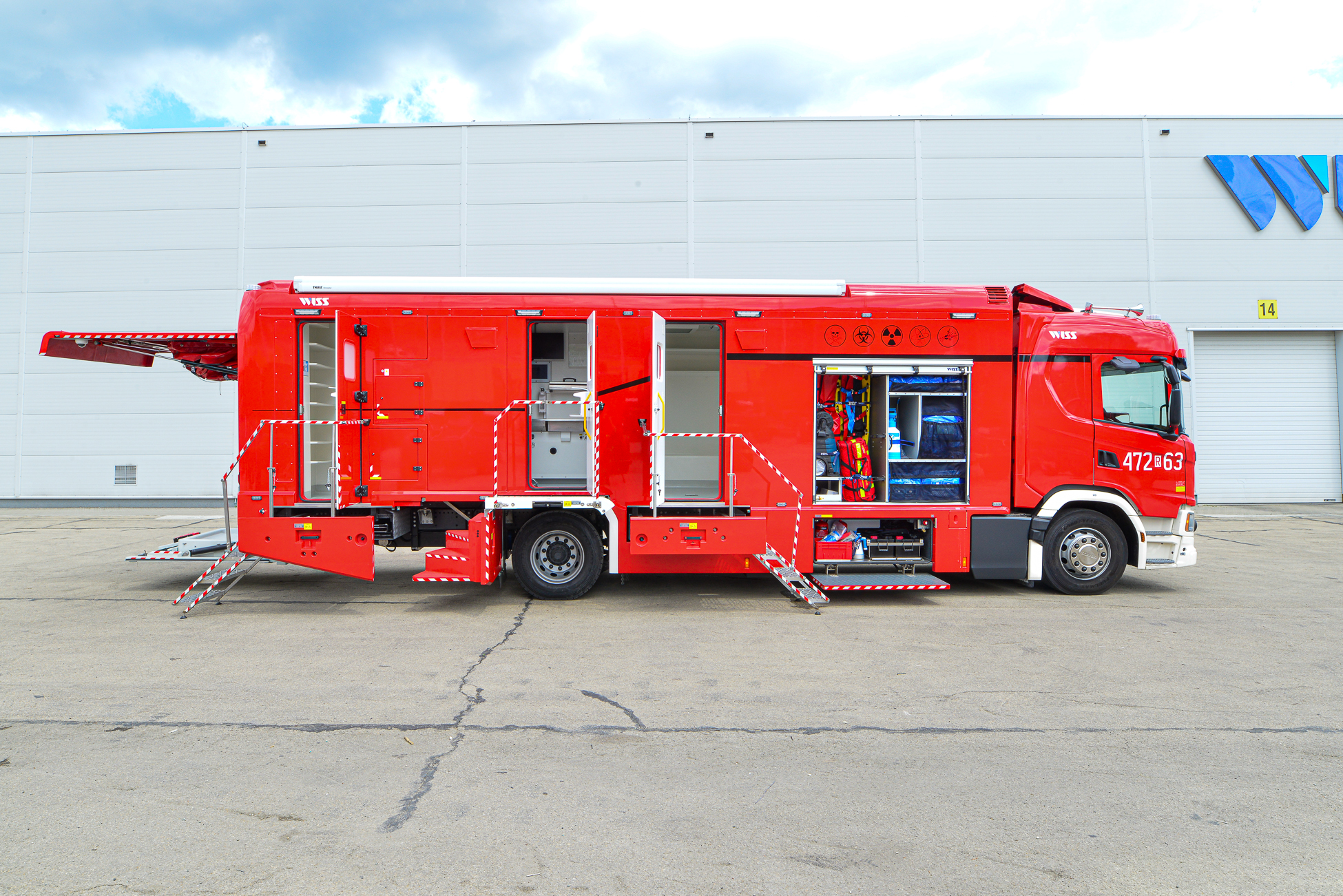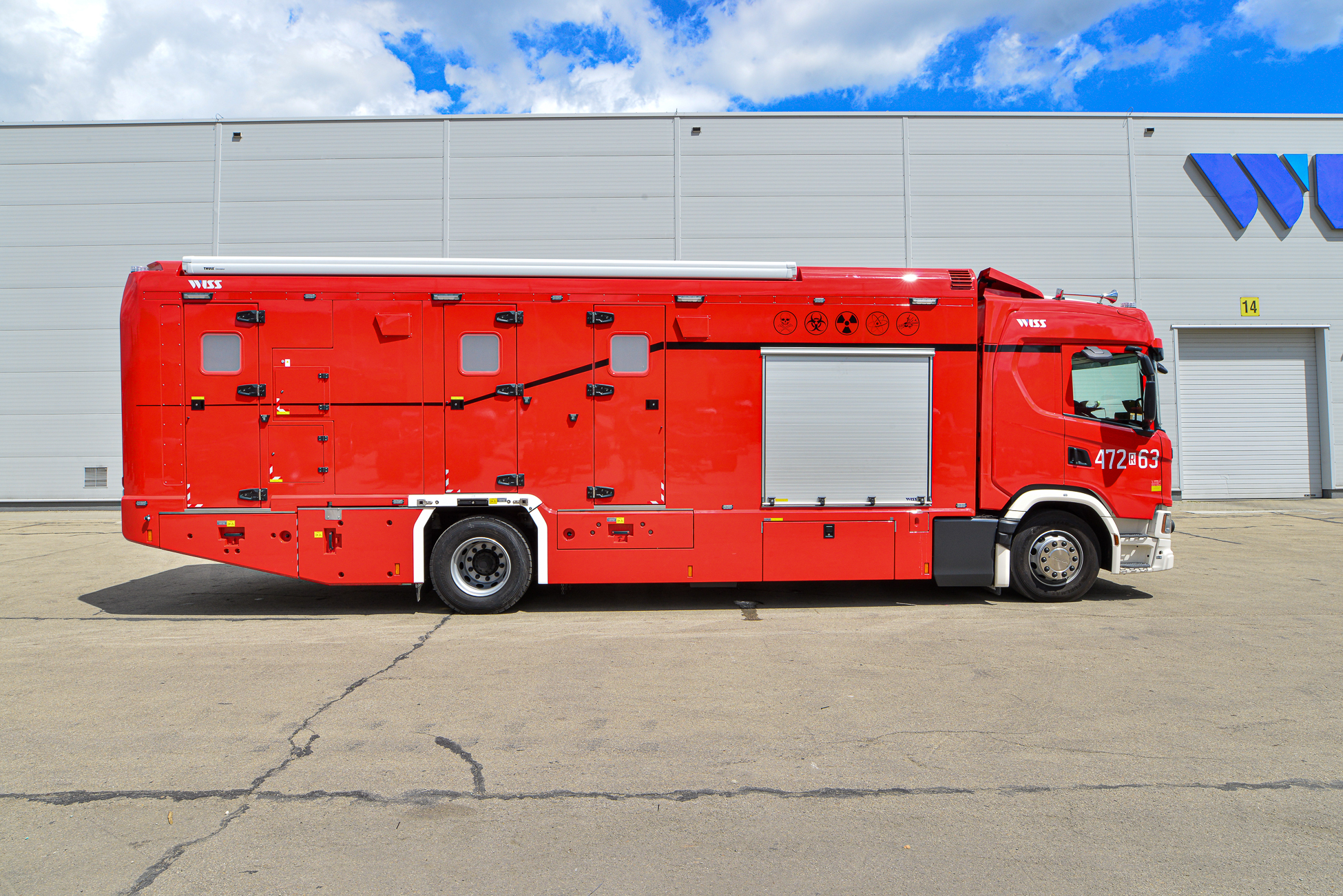 W związku z realizacją przez Komendę Wojewódzką Państwowej Straży Pożarnej w Warszawie zadania pod nazwą „Dostawa 8 sztuk samochodów do dekontaminacji przy zagrożeniach CBRNe”, w dniu 20 maja 2022 roku przeprowadzona została procedura odbioru techniczno-jakościowego pierwszego egzemplarza pojazdu.