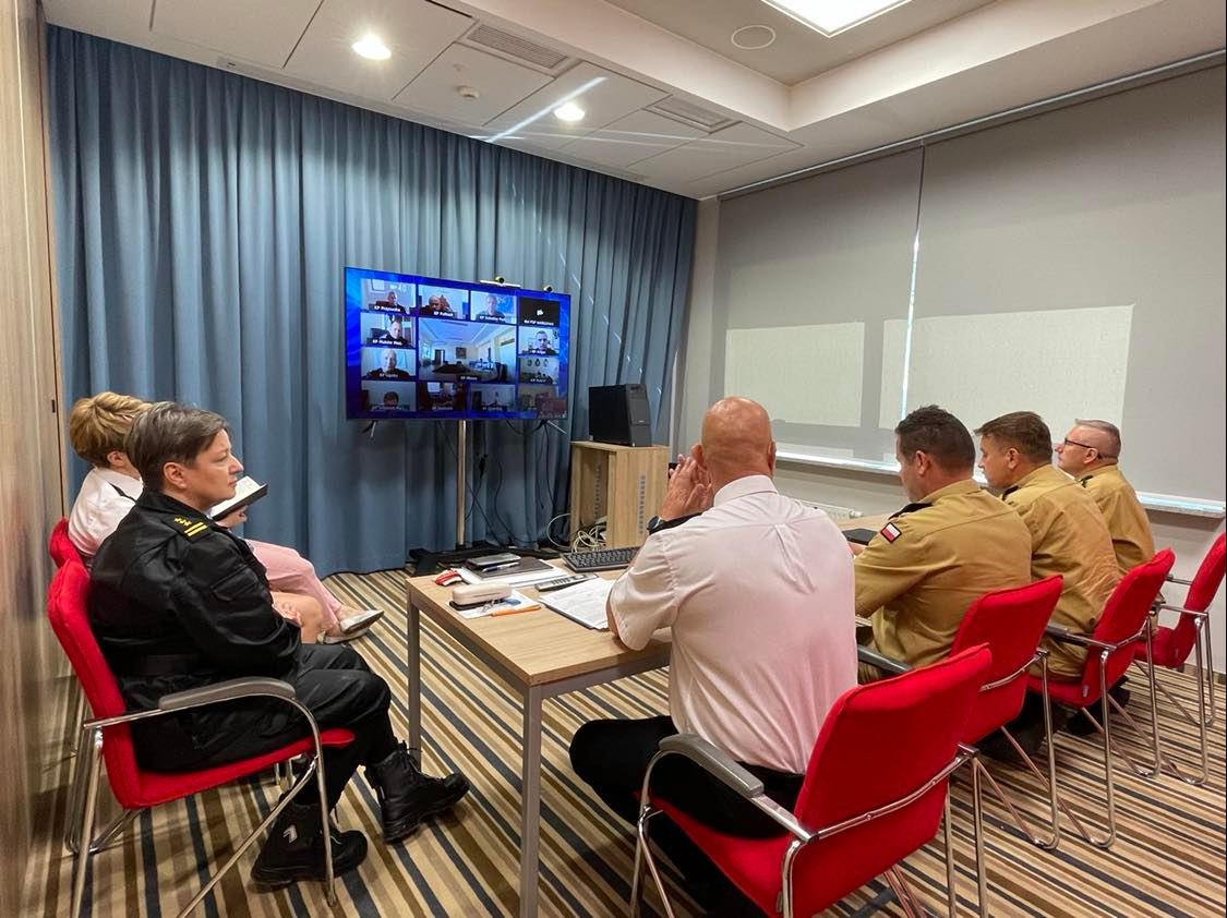 31 sierpnia 2022 w siedzibie Komendy Wojewódzkiej Państwowej Straży Pożarnej w Warszawie odbyła się wideokonferencja z Komendantami i Zastępcami Komendantów Miejskich/Powiatowych PSP. Podczas odprawy poruszone zostały sprawy bieżące, w tym zagadnienia finansowe, logistyczne, prewencyjne oraz polityka informacyjno-medialna. Spotkaniu przewodniczył Mazowiecki Komendant Wojewódzki PSP nadbryg. Jarosław Nowosielski wraz z Zastępcami: st. bryg. Arturem Gonerą, st. bryg. Dariuszem Stumskim i st. bryg. Tomaszem Cybul.