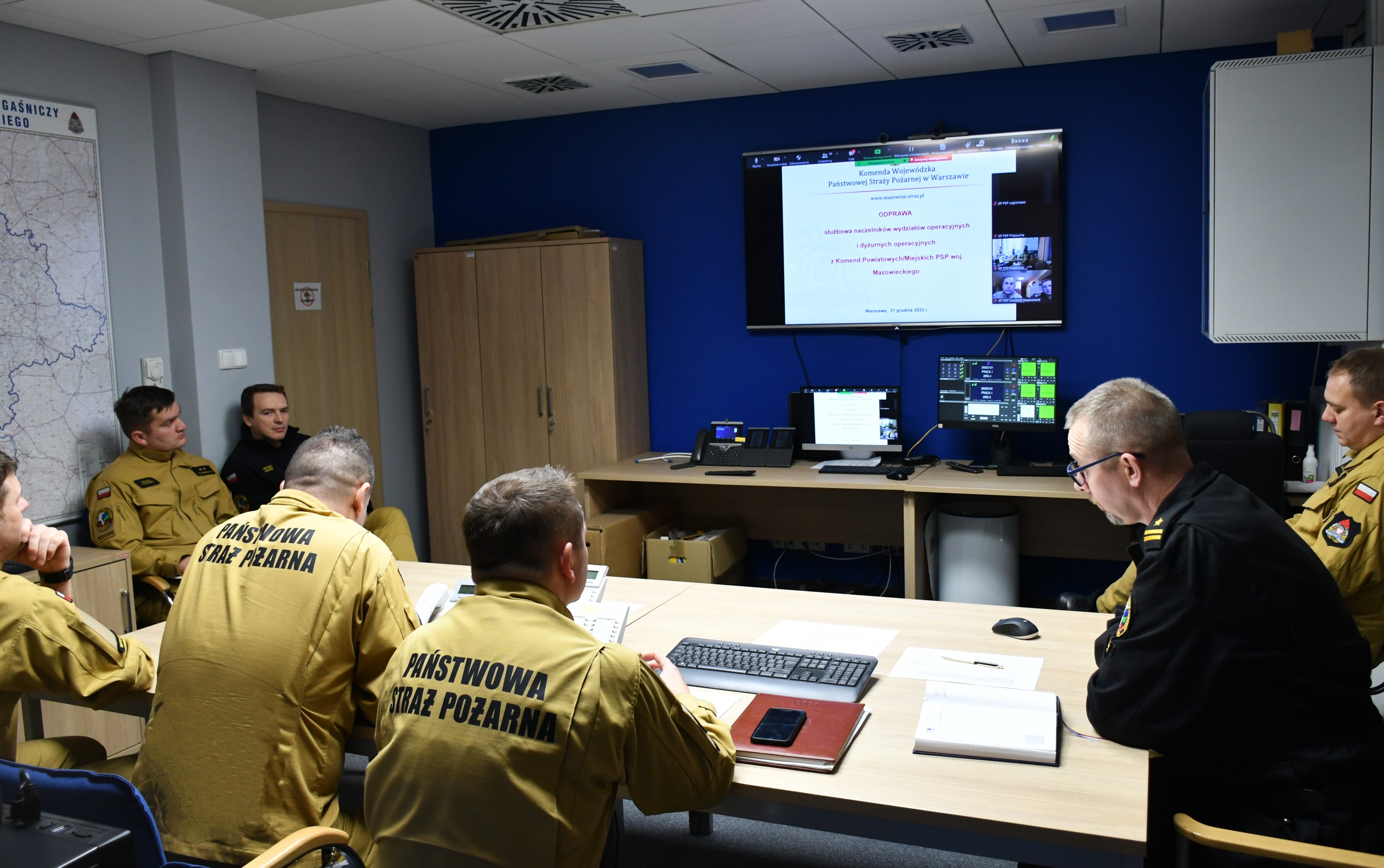 21 grudnia 2023 roku odbyła się w formie wideokonferencji odprawa kadry kierowniczej Komendy Wojewódzkiej Państwowej Straży Pożarnej w Warszawie z naczelnikami wydziałów operacyjnych i dyżurnymi operacyjnymi komend powiatowych i miejskich Państwowej Straży Pożarnej województwa mazowieckiego.