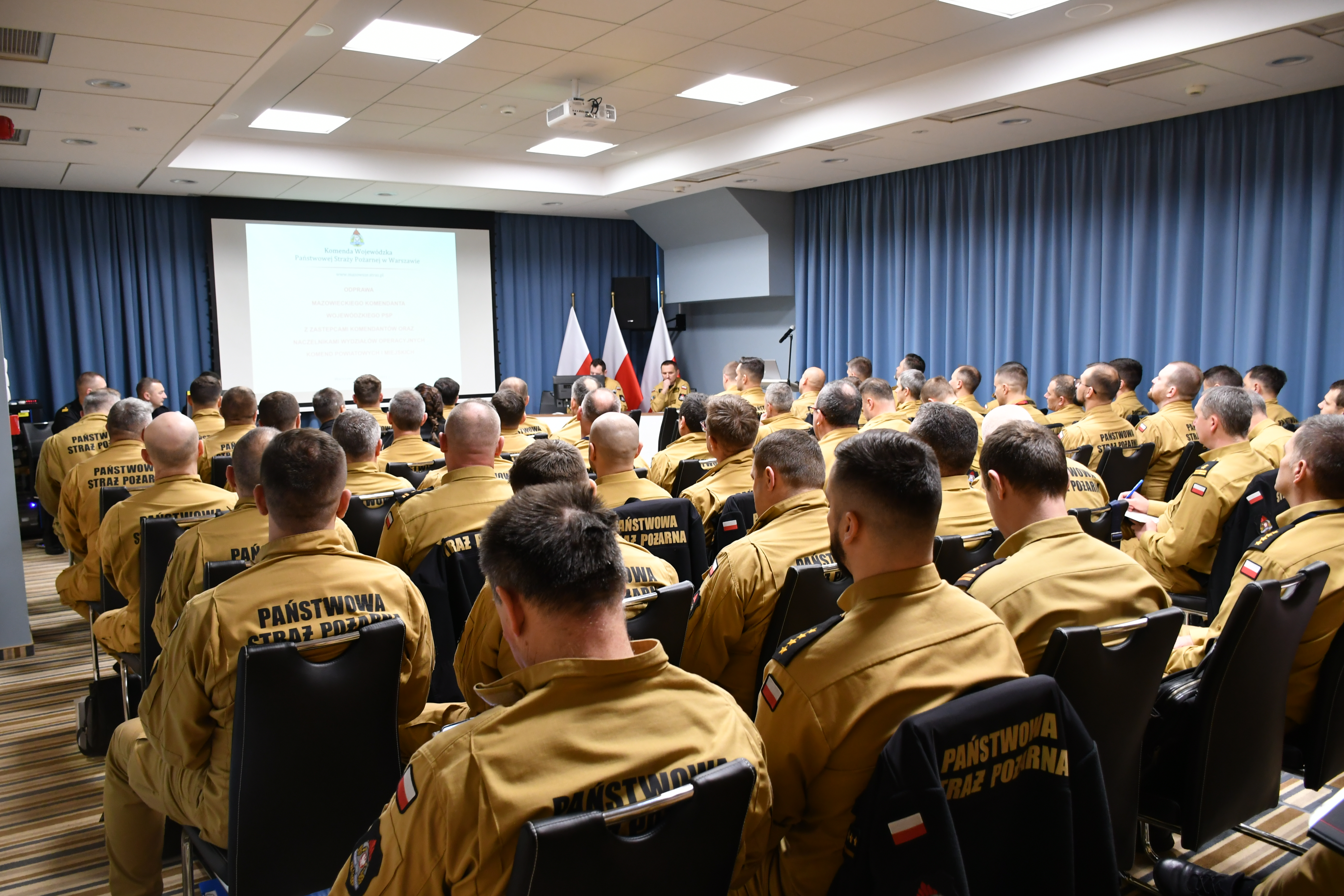 18 grudnia 2023 roku w Komendzie Wojewódzkiej PSP w Warszawie odbyła się odprawa kadry kierowniczej Komendy Wojewódzkiej Państwowej Straży Pożarnej w Warszawie z zastępcami komendantów komend powiatowych i miejskich Państwowej Straży Pożarnej województwa mazowieckiego oraz naczelników wydziałów operacyjnych Komend Powiatowych i Miejskich PSP.