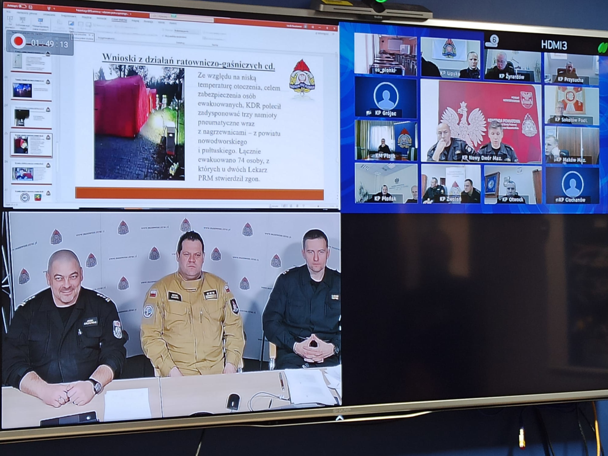 21 grudnia 2021 roku w formie wideokonferencji odbyła się odprawa kadry kierowniczej Komendy Wojewódzkiej Państwowej Straży Pożarnej w Warszawie z Zastępcami Komendantów Komend Powiatowych i Miejskich Państwowej Straży Pożarnej województwa mazowieckiego oraz Naczelników Wydziałów Operacyjnych Komend Powiatowych i Miejskich PSP.