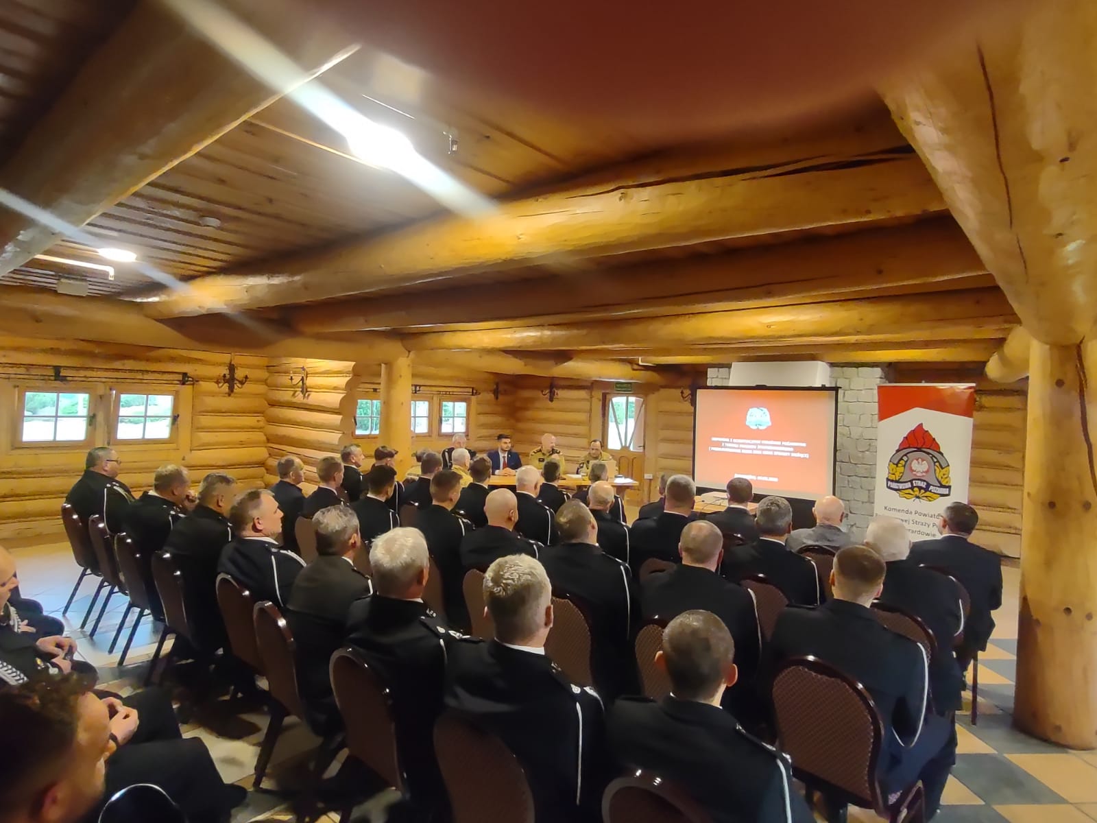 Zastępca Mazowieckiego Komendanta Wojewódzkiego PSP – koordynator ds. OSP st. bryg. Tomasz Cybul przedstawił uczestnikom spotkania realizację zagadnień, dotyczących zapisów ustawy o ochotniczych strażach pożarnych, w tym procedowanych zmian, a także plany w zakresie doposażenia jednostek OSP w pojazdy i sprzęt pożarniczy oraz prowadzoną na rzecz druhów działalność szkoleniową. Podziękował przedstawicielom jednostek Ochotniczych Straży Pożarnych za ich trud, zaangażowanie i poświęcenie na rzecz ochrony przeciwpożarowej na Mazowszu. St. bryg. Tomasz Cybul złożył również życzenia w imieniu Pana Macieja Małeckiego Sekretarza Stanu w Ministerstwie Aktywów Państwowych oraz Komendanta Głównego PSP gen. brygadiera Andrzeja Bartkowiaka, dziękując strażakom za ich poświęcenie oraz podkreślając, jak ważną rolę odgrywają ochotnicze straże pożarne w systemie bezpieczeństwa kraju.