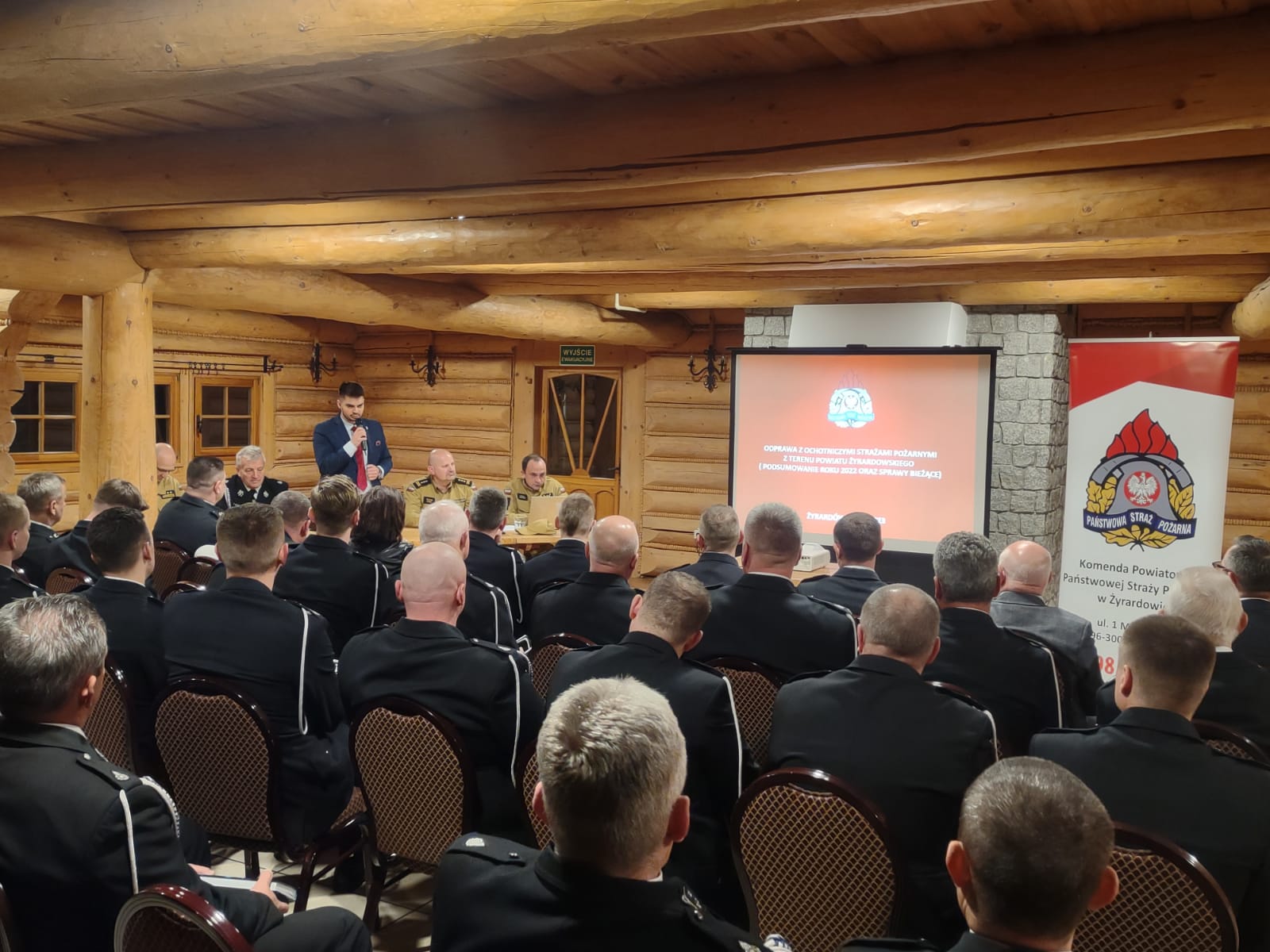 Spotkanie miało na celu podsumowanie działalności jednostek ochrony przeciwpożarowej z terenu powiatu za rok 2022 oraz omówienie przez kadrę kierowniczą Komendy Powiatowej Państwowej Straży Pożarnej w Żyrardowie bieżących zagadnień, dotyczących funkcjonowania jednostek Ochotniczych Straży Pożarnych.