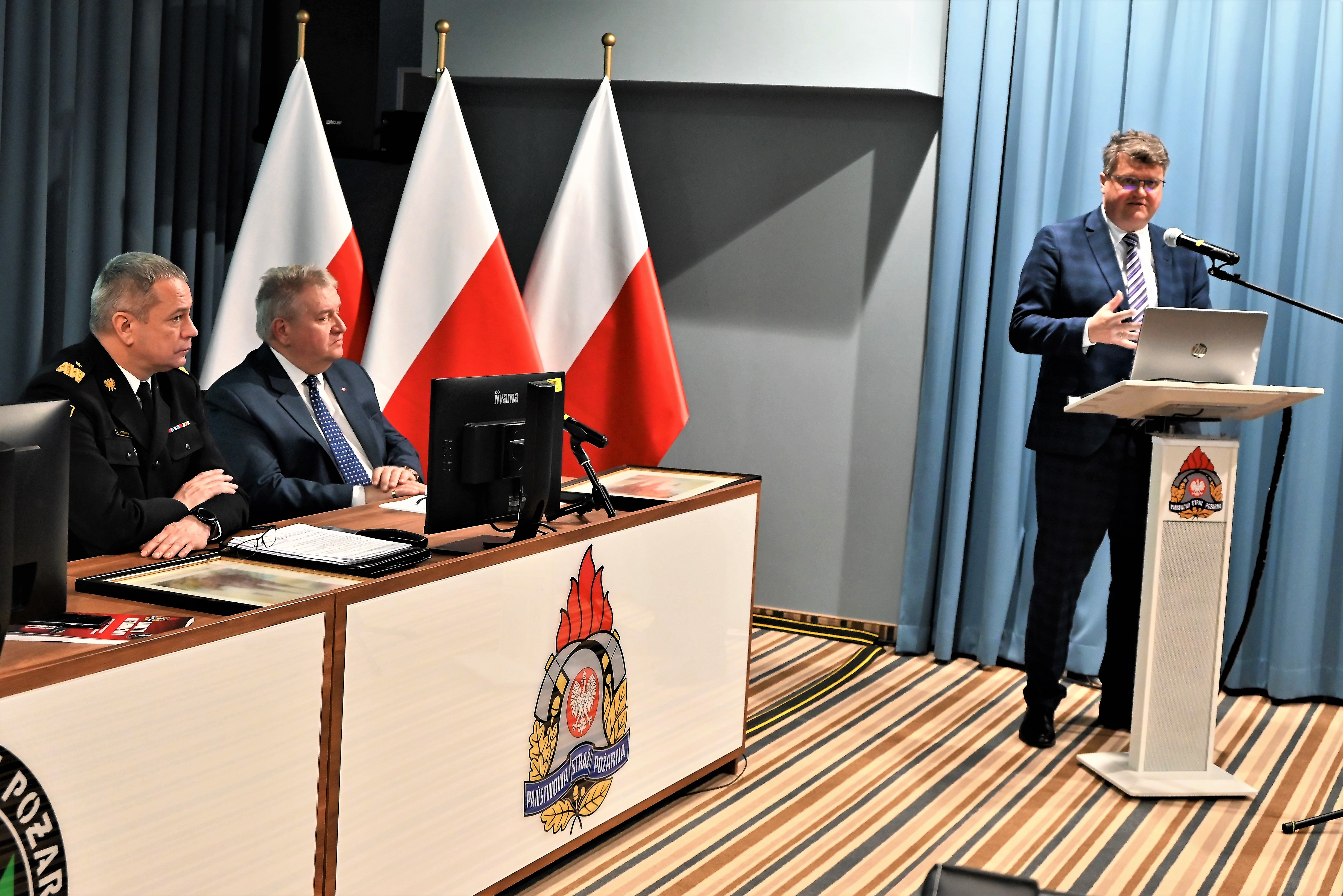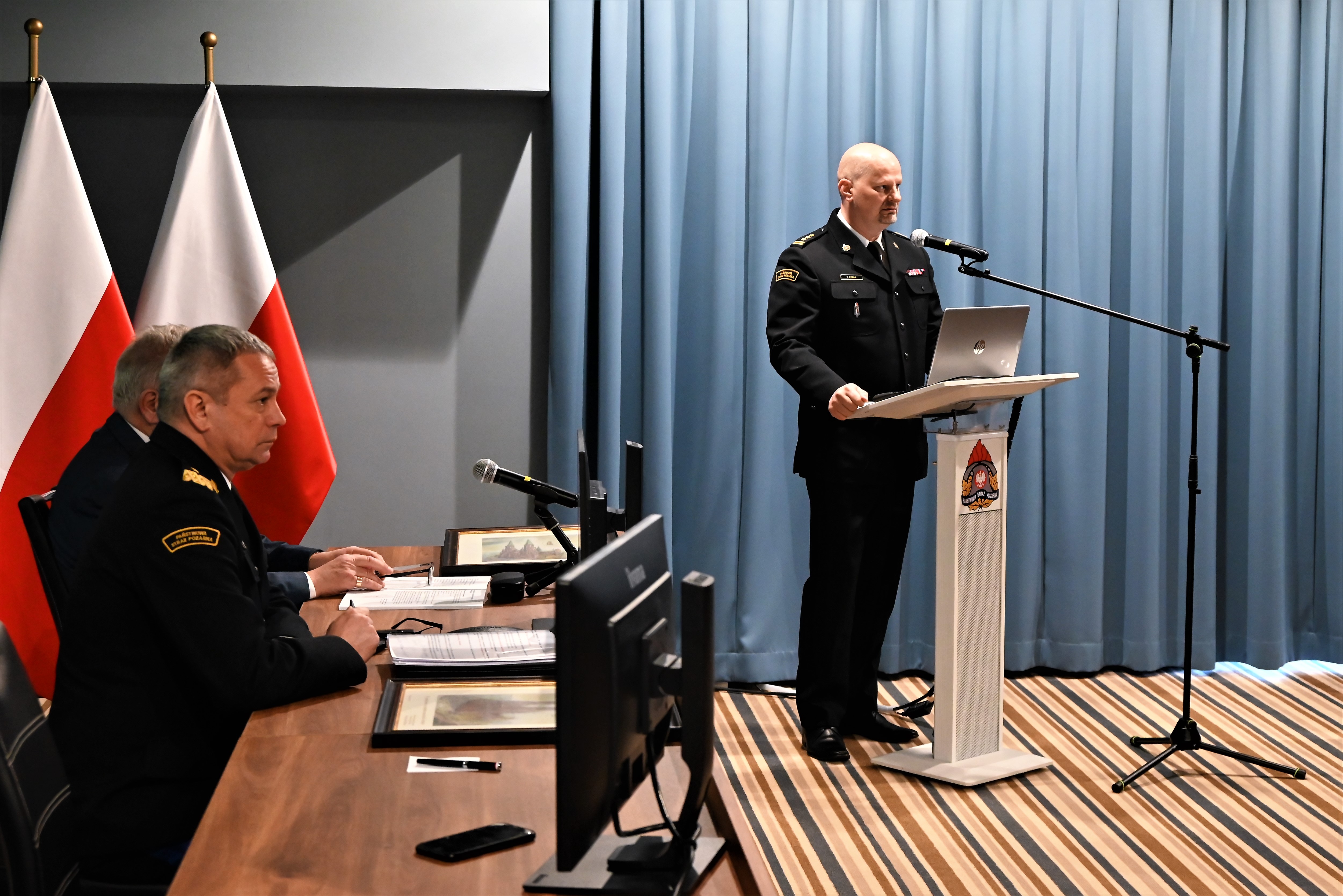 Następnie Mazowiecki Komendant Wojewódzki PSP wraz z Zastępcami: st. bryg. Arturem Gonerą, st. bryg. Rafałem Zimochockim oraz st. bryg. Tomaszem Cybul przedstawili dane z zakresu działalności operacyjnej, ze szczególnym zwróceniem uwagi na ilość i rodzaj podejmowanych działań przez mazowieckich strażaków, działalności logistycznej z uwzględnieniem zakupów sprzętowych oraz inwestycji budowlanych, działalności teleinformatycznej, szkoleniowej, kontrolno-rozpoznawczej, kadrowej, organizacji i nadzoru, działalności w ramach prewencji społecznej, współpracy z OSP, a także wskazali cele i kierunki działania na rok 2023.