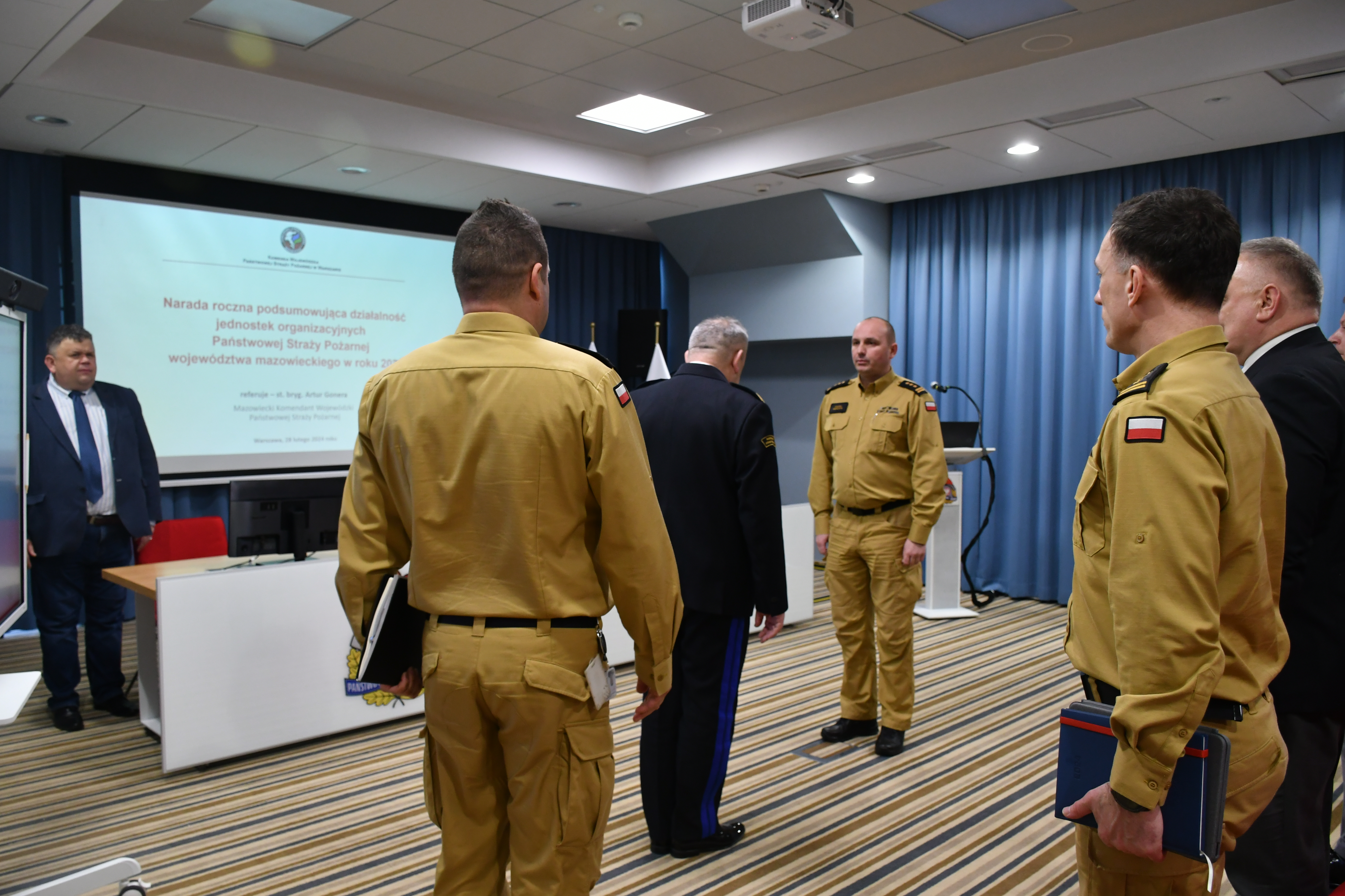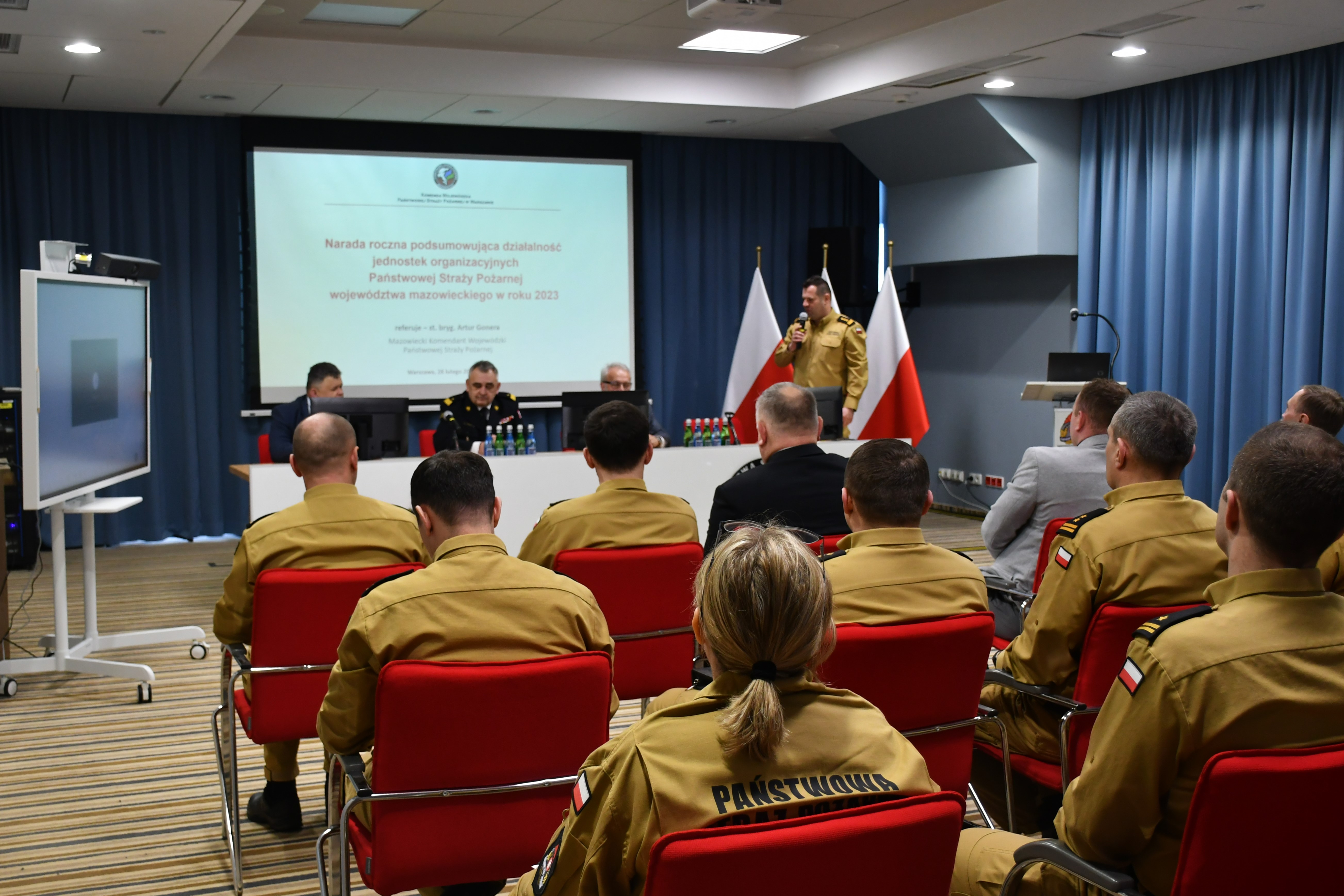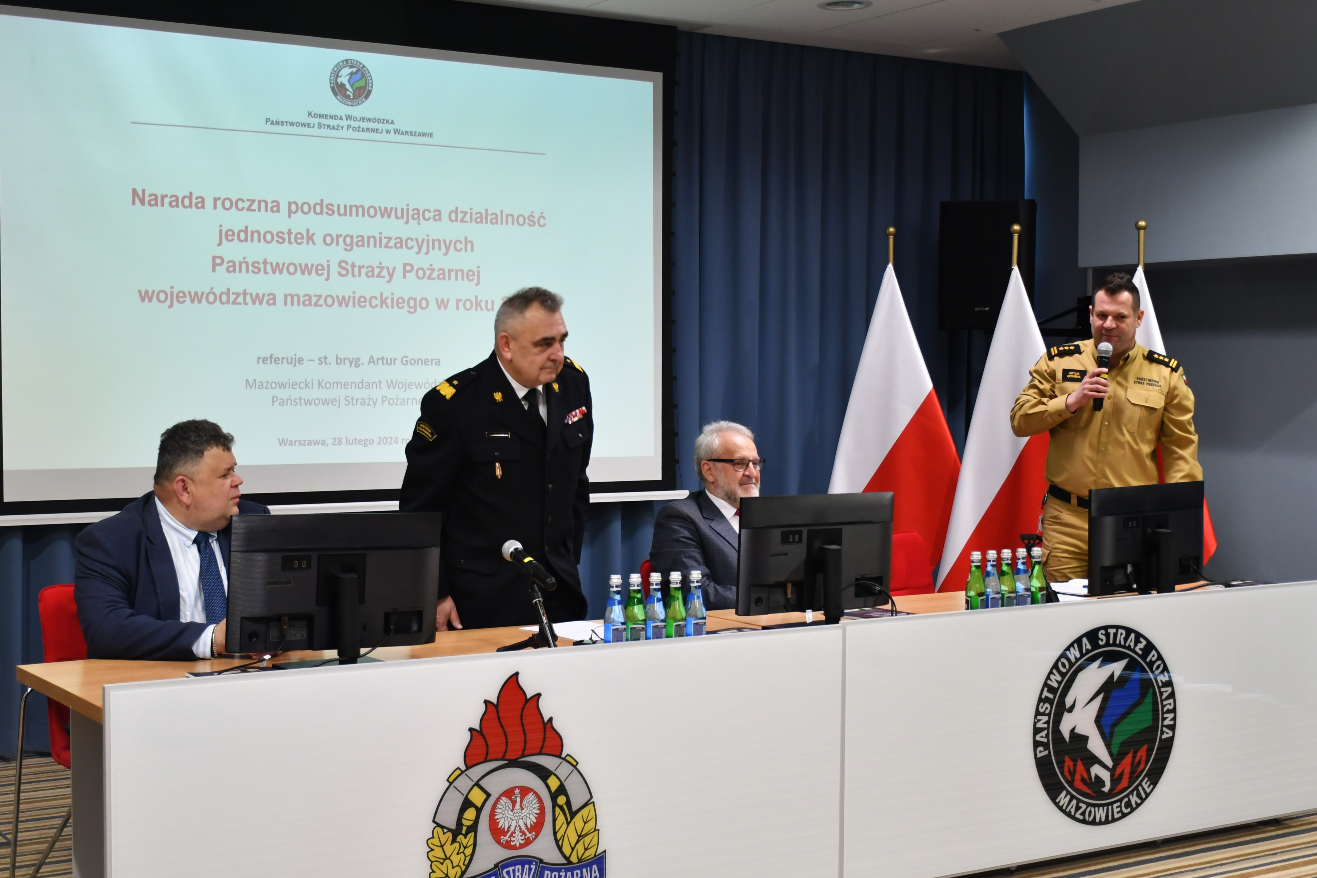 28 lutego 2024 roku w siedzibie Komendy Wojewódzkiej PSP w Warszawie odbyła się odprawa podsumowująca działalność jednostek organizacyjnych Państwowej Straży Pożarnej województwa mazowieckiego. W spotkaniu uczestniczyli: