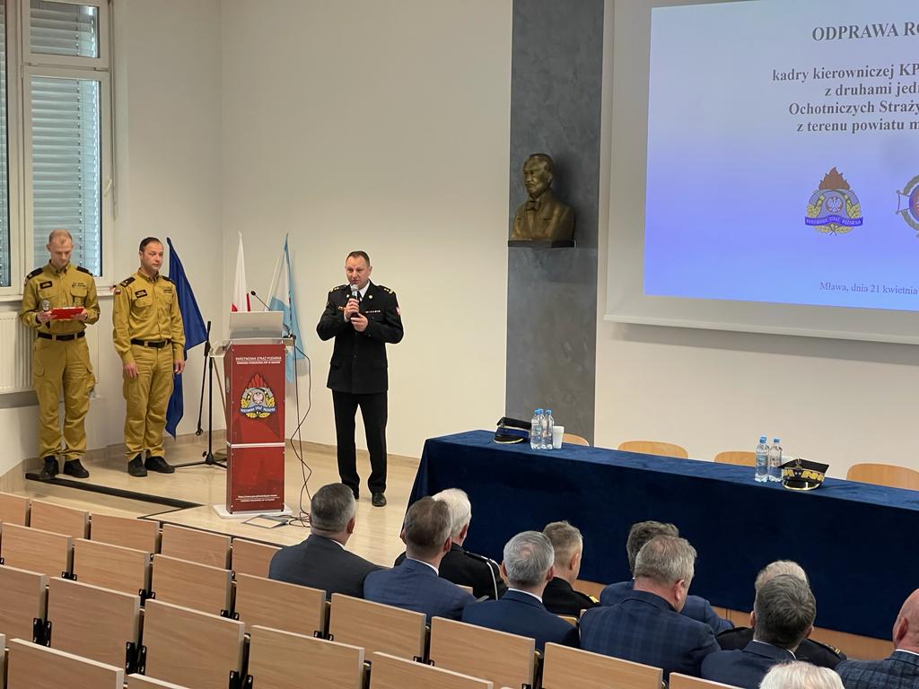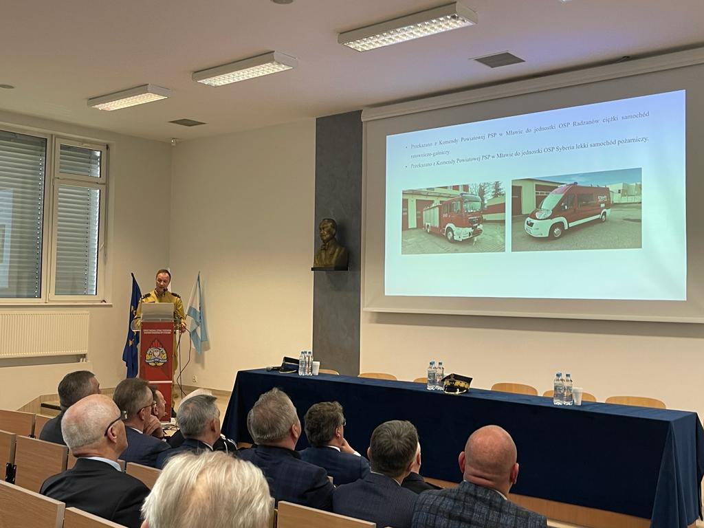 Mazowiecki Komendant Wojewódzki PSP st. bryg. Jarosław Piotrowski podkreślił ogromne znaczenie strażaków ochotników w systemie zapewnienia bezpieczeństwa powiatu mławskiego, a także ziemi mazowieckiej. Zapewnił również, że w dalszym ciągu będzie dążył do jak najlepszego doposażenia w sprzęt ratowniczo-gaśniczy jednostek OSP, jako partnera Państwowej Straży Pożarnej.