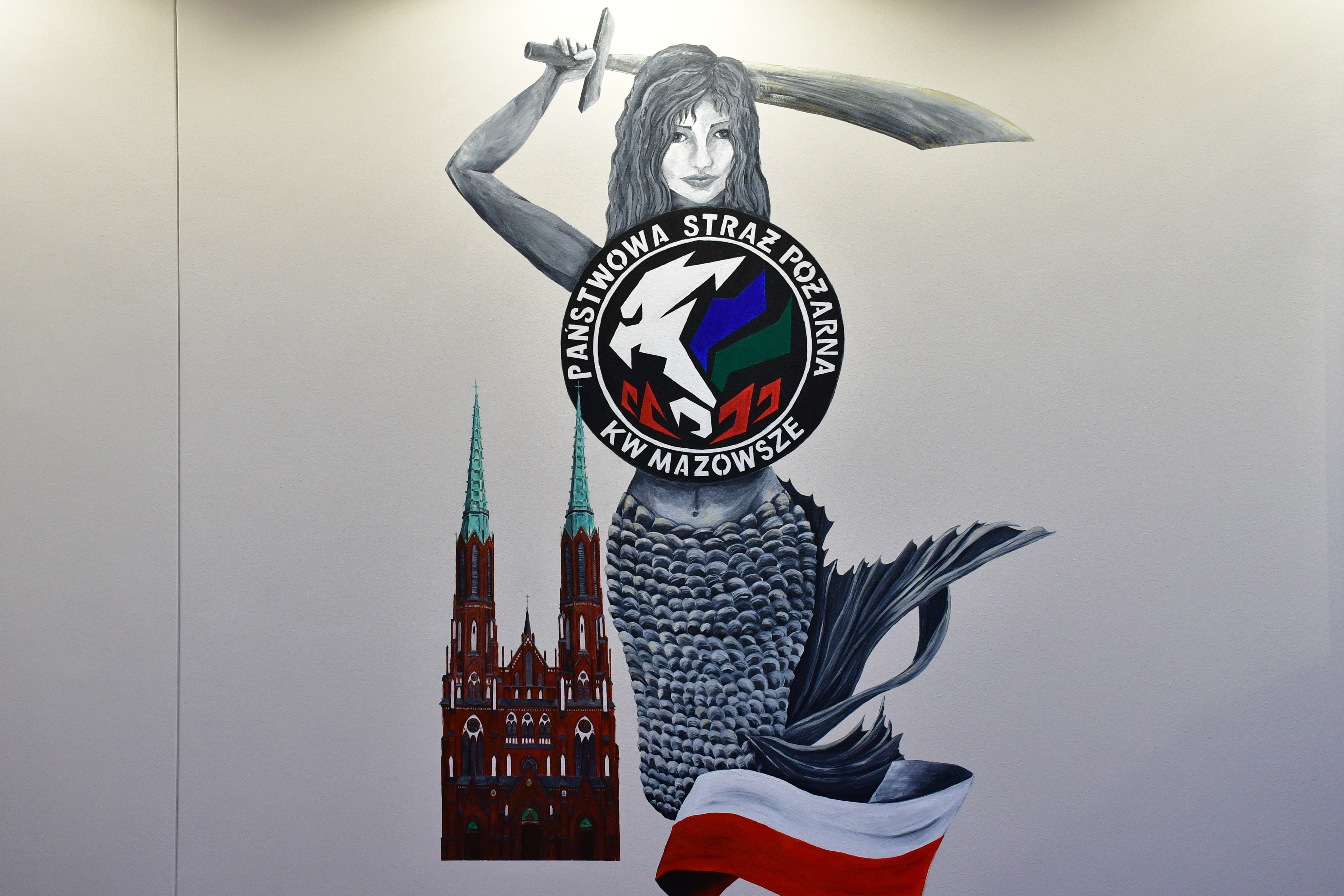Mural przedstawia syrenkę warszawską, w połączeniu z logo mazowieckiej straży pożarnej oraz Bazyliką Katedralną św. Michała Archanioła i św. Floriana Męczennika w Warszawie - świątynią mazowieckich strażaków.