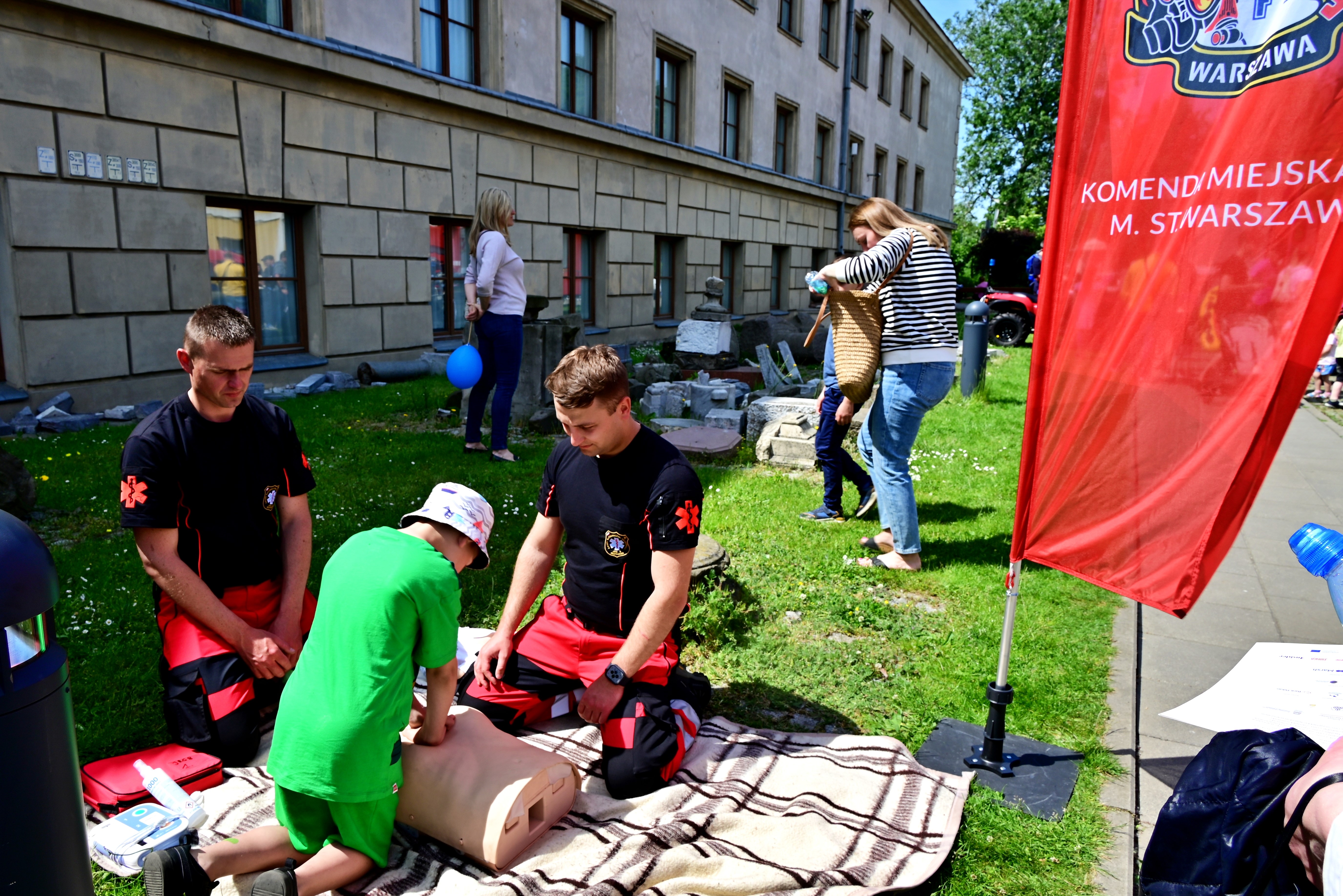 Uczestnicy pikniku mogli wziąć udział w warsztatach z pierwszej pomocy przedmedycznej pod okiem strażaków – ratowników z Grupy Ratownictwa Medycznego JRG nr 8 Komendy Miejskiej PSP m.st. Warszawy. Stanowisko cieszyło się dużym zainteresowaniem nie tylko wśród dzieci, ale również ich rodziców. Komenda Miejska PSP m. st. Warszawy przygotowała także stanowisko Specjalistycznej Grupy Ratownictwa Wodno-Nurkowego. Z kolei strażacy z Komendy Powiatowej PSP w Legionowie zaprezentowali mobilny symulator zagrożeń pożarowych, który zawsze cieszy się ogromnym zainteresowaniem najmłodszych. Potocznie zwany „domek” doskonale obrazuje różnego typu zagrożenia, które mogą powodować niebezpieczeństwo w naszym najbliższym otoczeniu – mieszkaniu czy domu.