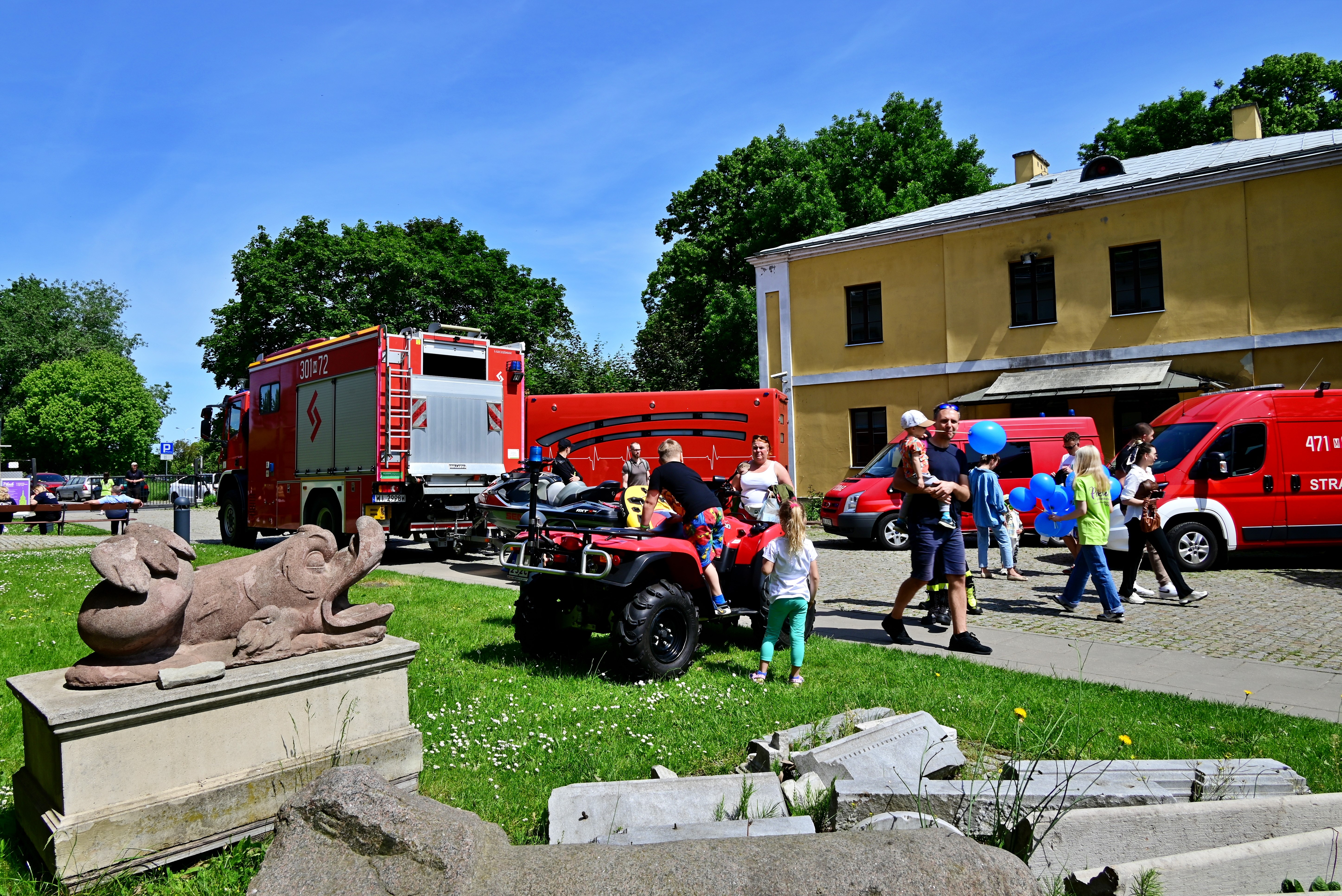 Ponadto podczas pikniku przygotowana została wystawa sprzętu i pojazdów pożarniczych. Jednostka Ratowniczo-Gaśnicza nr 1 Komendy Miejskiej PSP ms.t. Warszawy zaprezentowała średni samochód specjalny ratownictwa wodnego wraz z łodzią. Jednostka Ratowniczo-Gaśnicza nr 4 Komendy Miejskiej PSP m.st. Warszawy wystawiła ciężki samochód ratowniczo-gaśniczy, natomiast Jednostka Ratowniczo-Gaśnicza nr 8 Komendy Miejskiej PSP m. st. Warszawy zaprezentowała ciężki samochód specjalny ratownictwa medycznego. Strażacy z Jednostki Ratowniczo-Gaśniczej nr 9 Komendy Miejskiej PSP m.st. Warszawy wystawili pojazd wielozadaniowy typu quad.