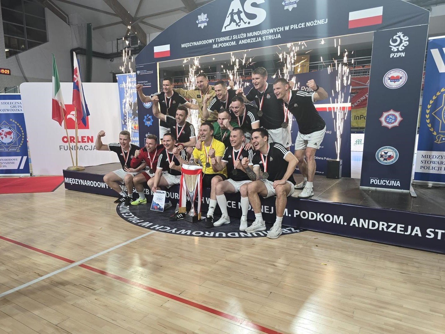 Drużyna Komendy Wojewódzkiej PSP w Warszawie zwyciężyła w kategorii „+35 mężczyzn” XVI Międzynarodowego Turnieju Służb Mundurowych w Piłce Nożnej Halowej im. podkom. Andrzeja Struja.