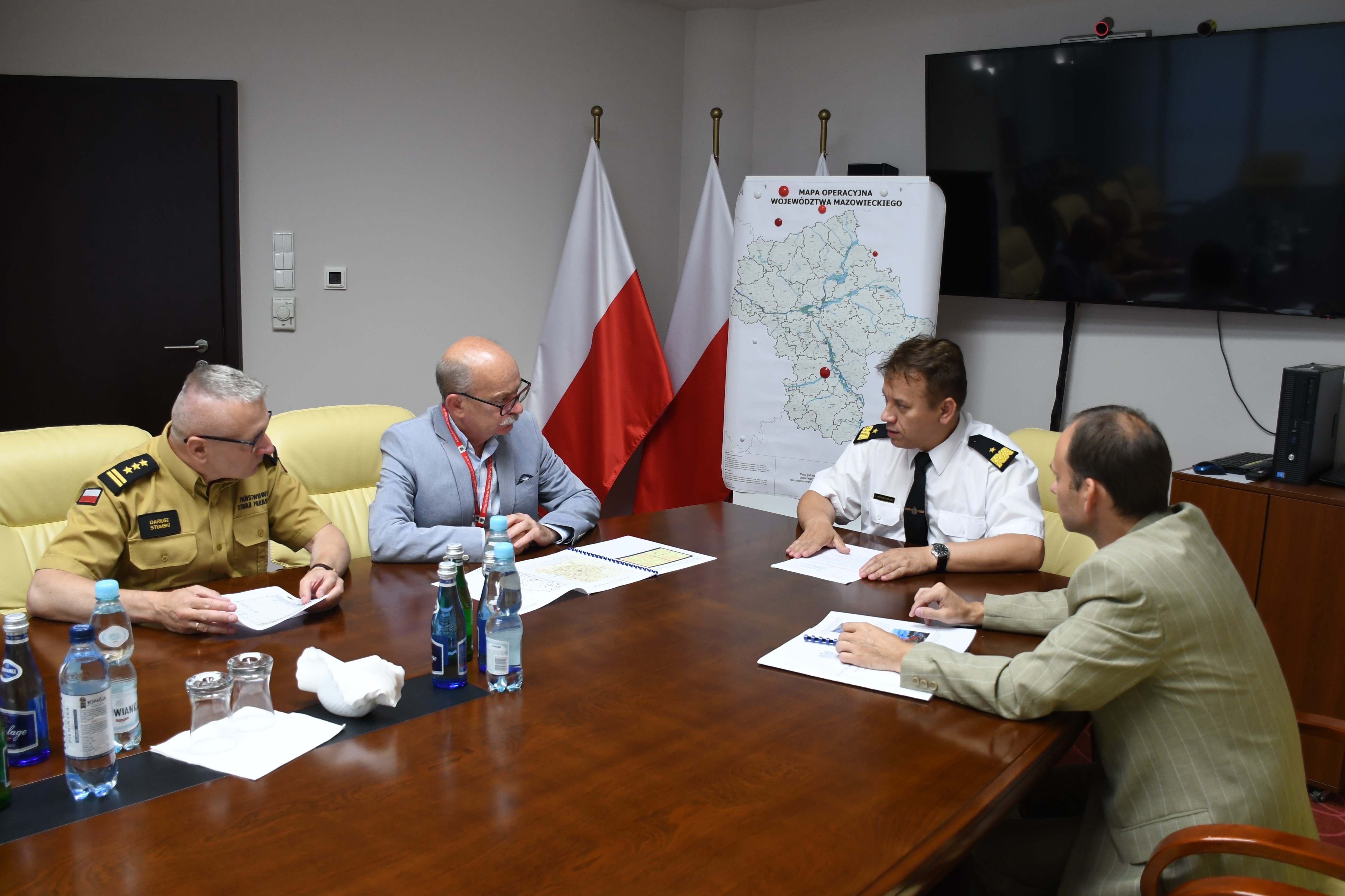 20 lipca 2022 roku w siedzibie Komendy Wojewódzkiej PSP w Warszawie odbyło się spotkanie nadbryg. Jarosława Nowosielskiego Mazowieckiego Komendanta Wojewódzkiego PSP z Panem Wojciechem Radeckim Dyrektorem Departamentu Ochrony Ludności i Zarządzania Kryzysowego w Ministerstwie Spraw Wewnętrznych i Administracji oraz Panem Romanem Jaworskim Naczelnikiem Wydziału Ochrony Ludności w ww. departamencie. W spotkaniu uczestniczył również st. bryg. Dariusz Stumski Zastępca Mazowieckiego Komendanta Wojewódzkiego PSP.