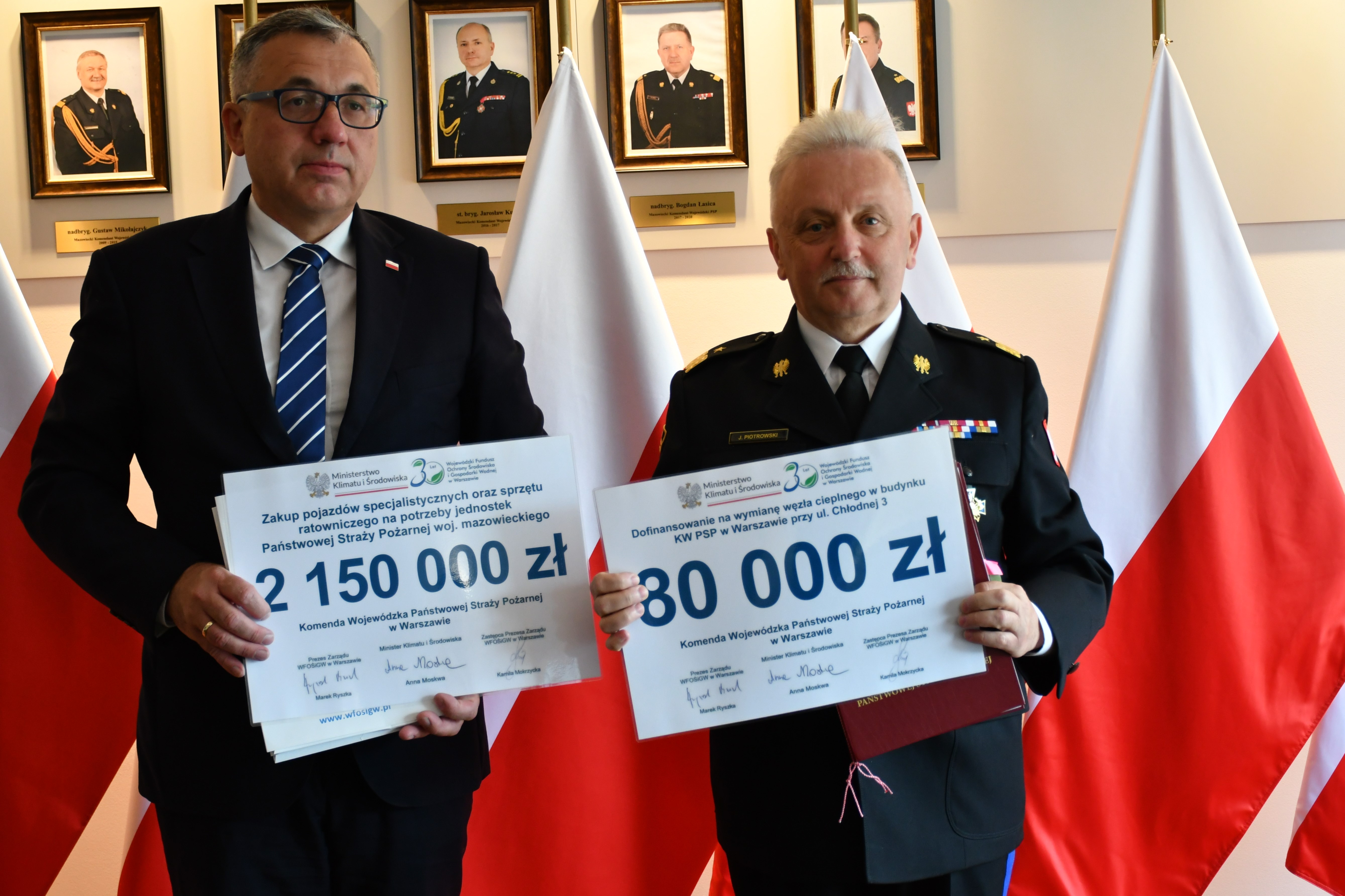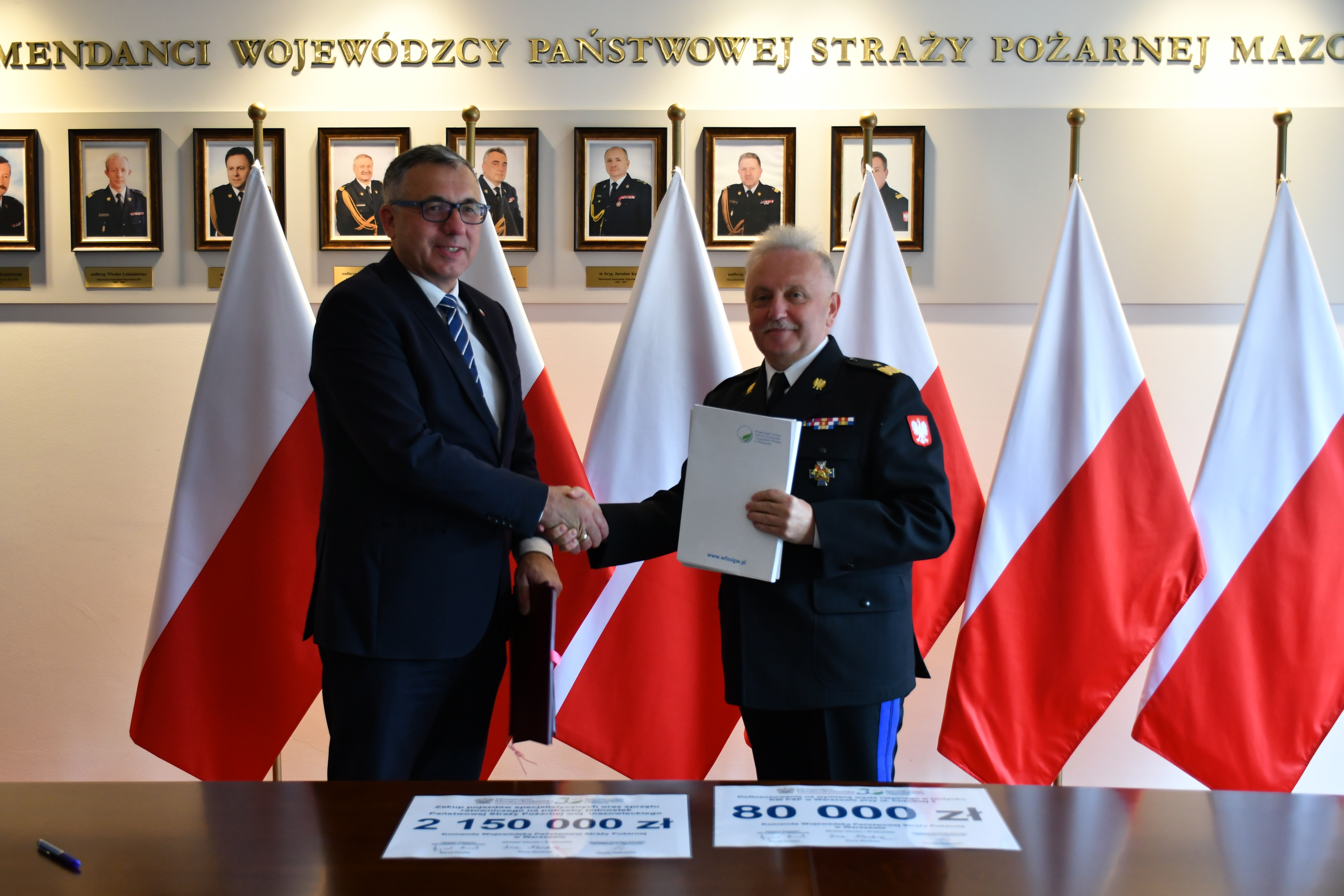 Wojewódzki Fundusz Ochrony Środowiska i Gospodarki Wodnej w Warszawie przekaże 2 150 000 zł na zakup pojazdów specjalistycznych oraz sprzętu ratowniczego na potrzeby jednostek Państwowej Straży Pożarnej województwa mazowieckiego. Mazowieccy strażacy zyskają 11 nowoczesnych samochodów ratowniczo-gaśniczych. Dodatkowo Fundusz przekaże 80 000 zł na dofinansowanie wymiany węzła cieplnego w budynku Komendy Wojewódzkiej Państwowej Straży Pożarnej w Warszawie przy ul. Chłodnej 3.