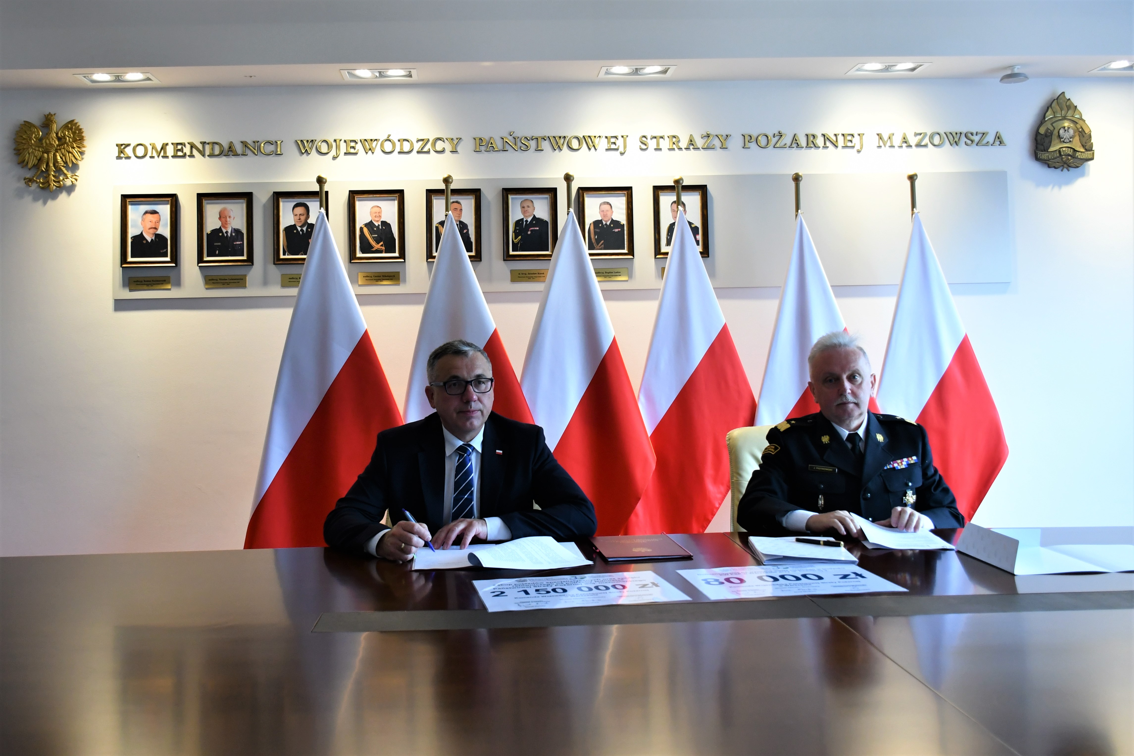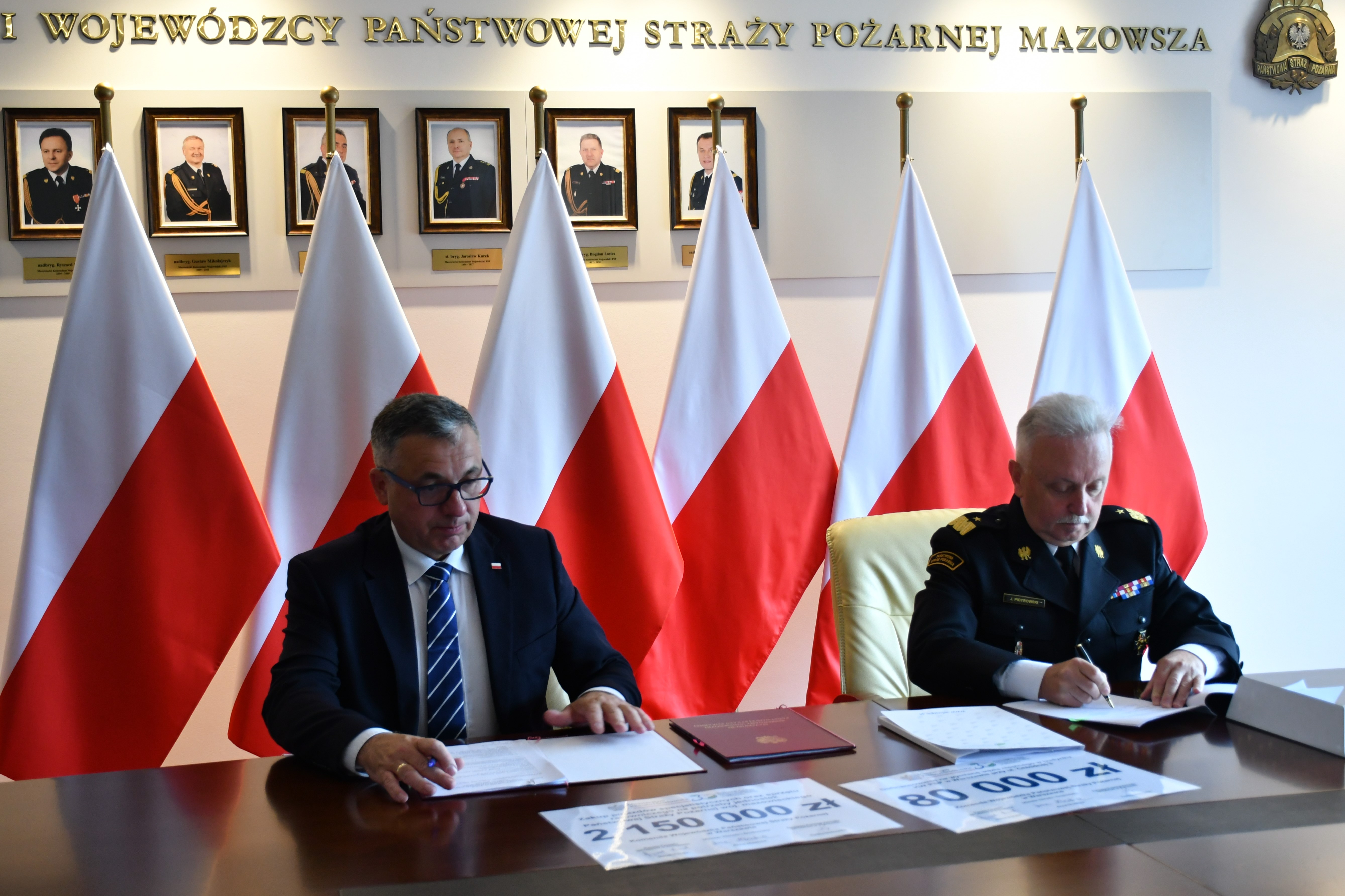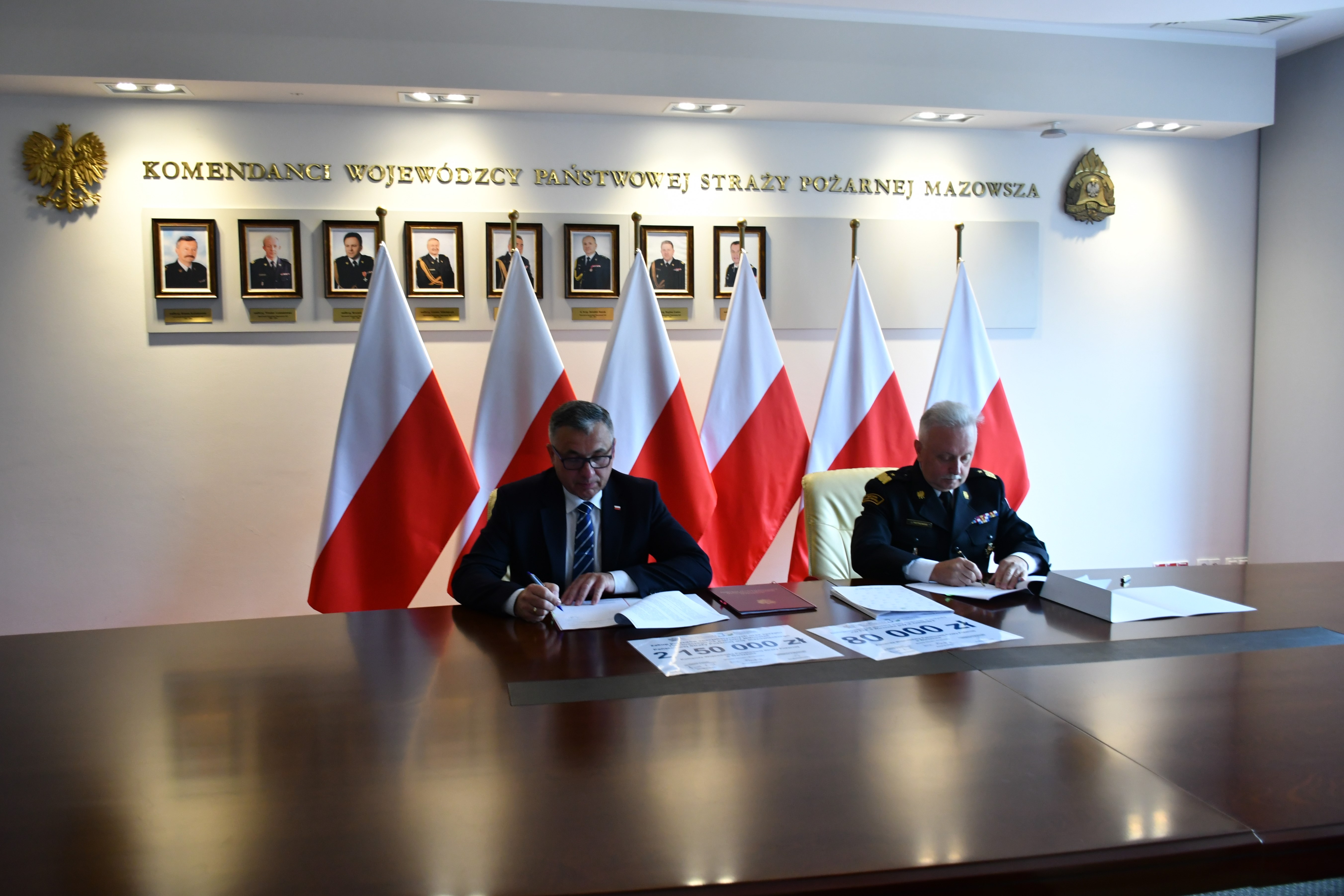 27 czerwca 2023 roku w siedzibie Komendy Wojewódzkiej PSP w Warszawie Prezes WFOŚiGW w Warszawie Pan Marek Ryszka i Mazowiecki Komendant Wojewódzki PSP nadbryg. Jarosław Piotrowski podpisali umowy dotacyjne na dofinansowanie Państwowej Straży Pożarnej na Mazowszu.
