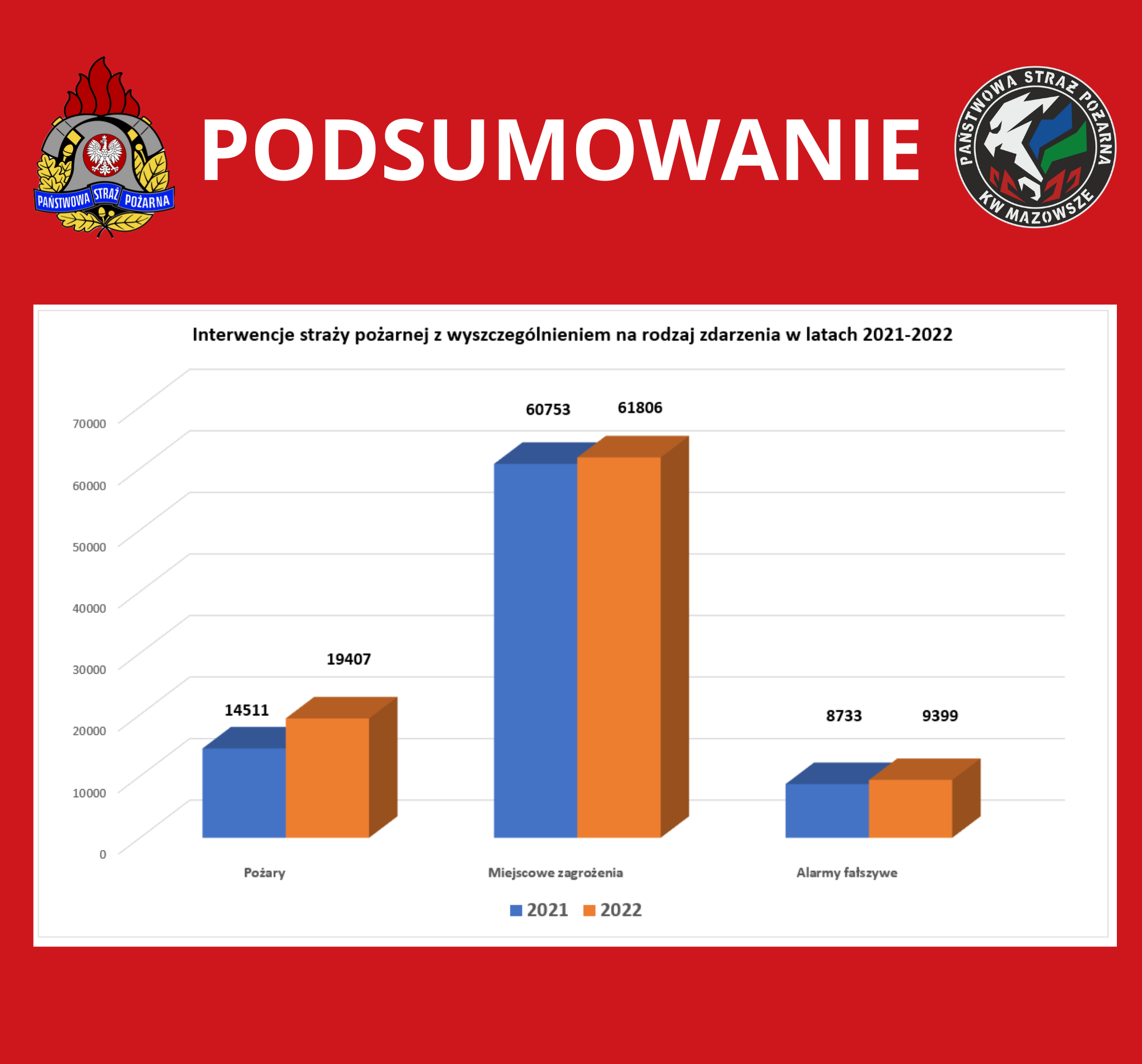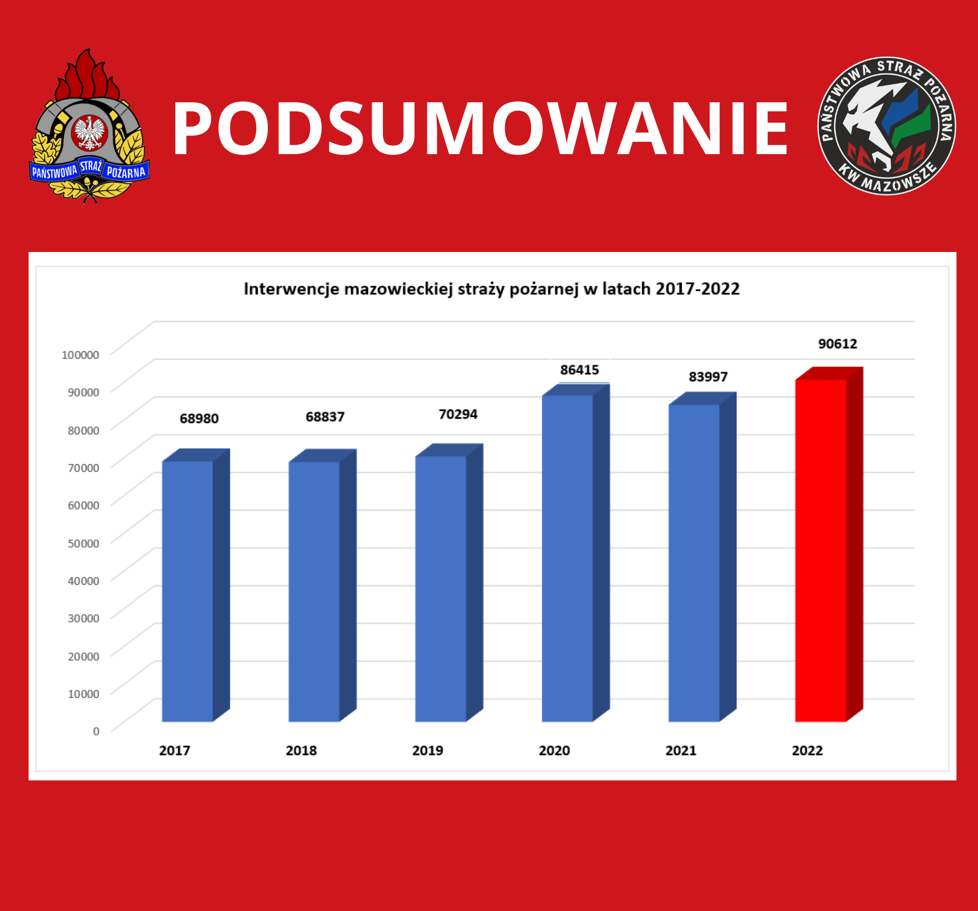 W 2022 roku strażacy odnotowali ponad 608 tysięcy interwencji w skali kraju, co jest największą liczbą zdarzeń notowaną w 30-letniej historii Państwowej Straży Pożarnej.