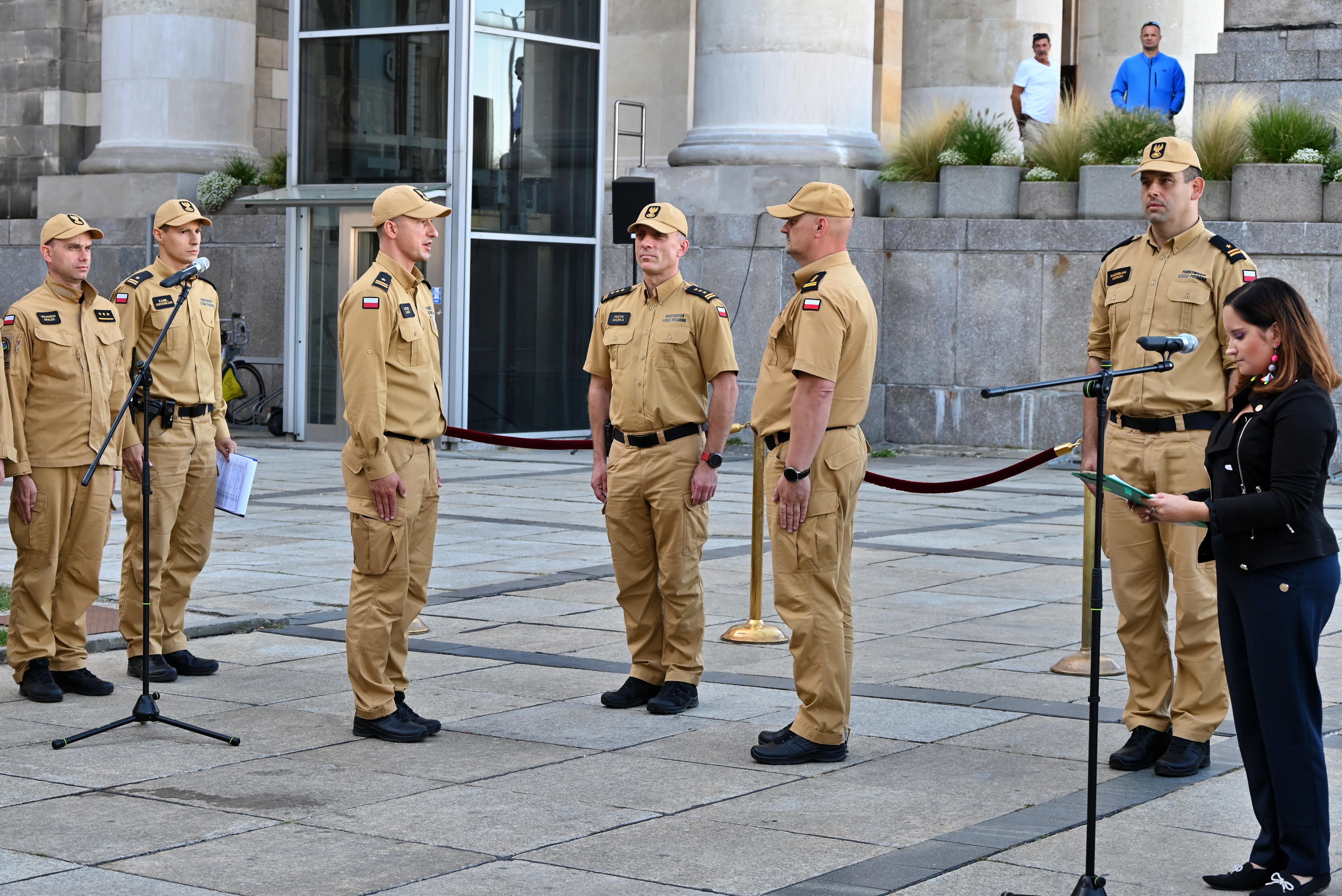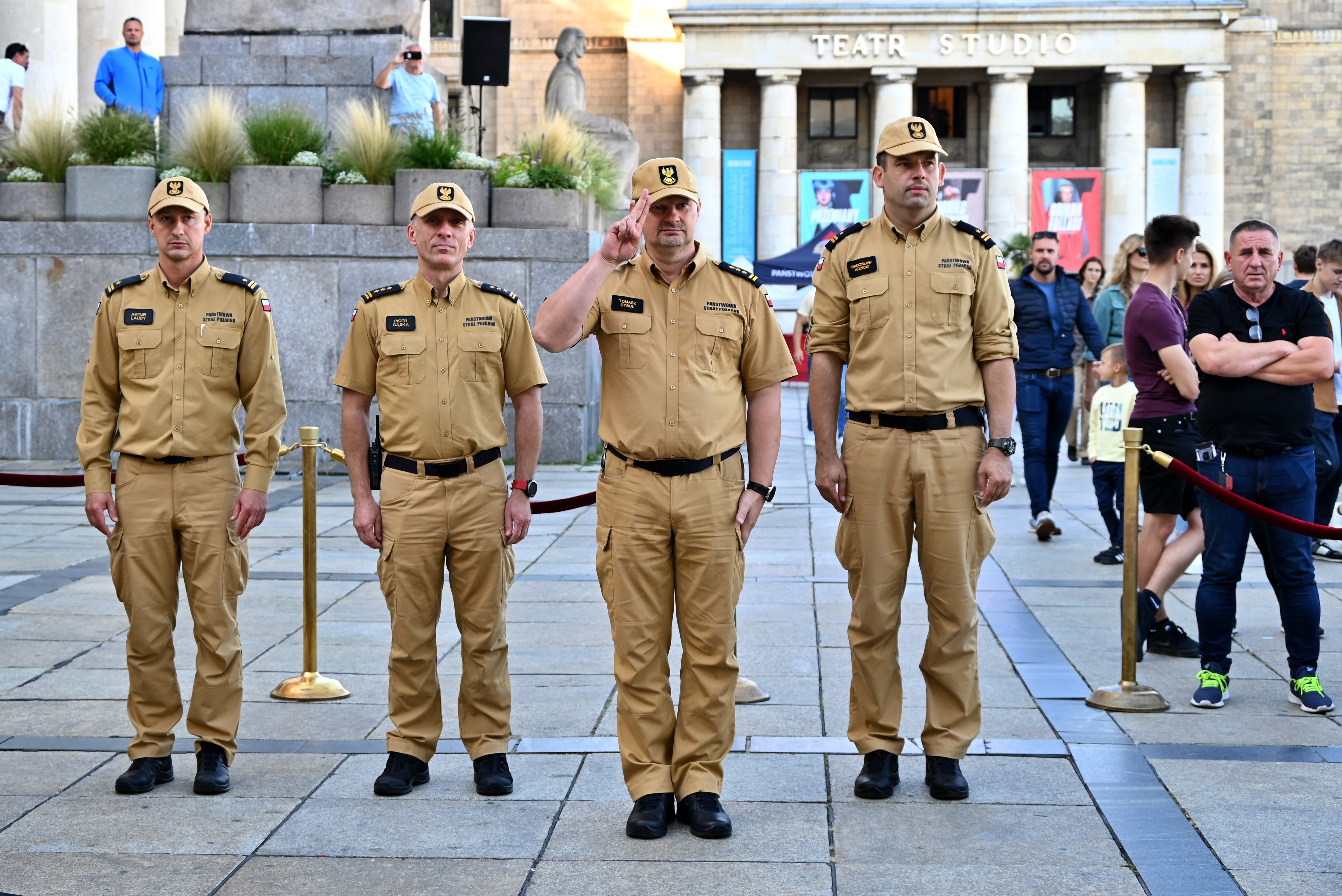 Medale i dyplomy wręczyli: st. bryg. Tomasz Cybul - Zastępca Mazowieckiego Komendanta Wojewódzkiego PSP, st. bryg. Piotr Gąska - Zastępca Komendanta Miejskiego PSP m.st. Warszawy oraz mł. bryg. Radosław Kozicki - Naczelnik Ośrodka Szkolenia w Warszawie KW PSP w Warszawie.