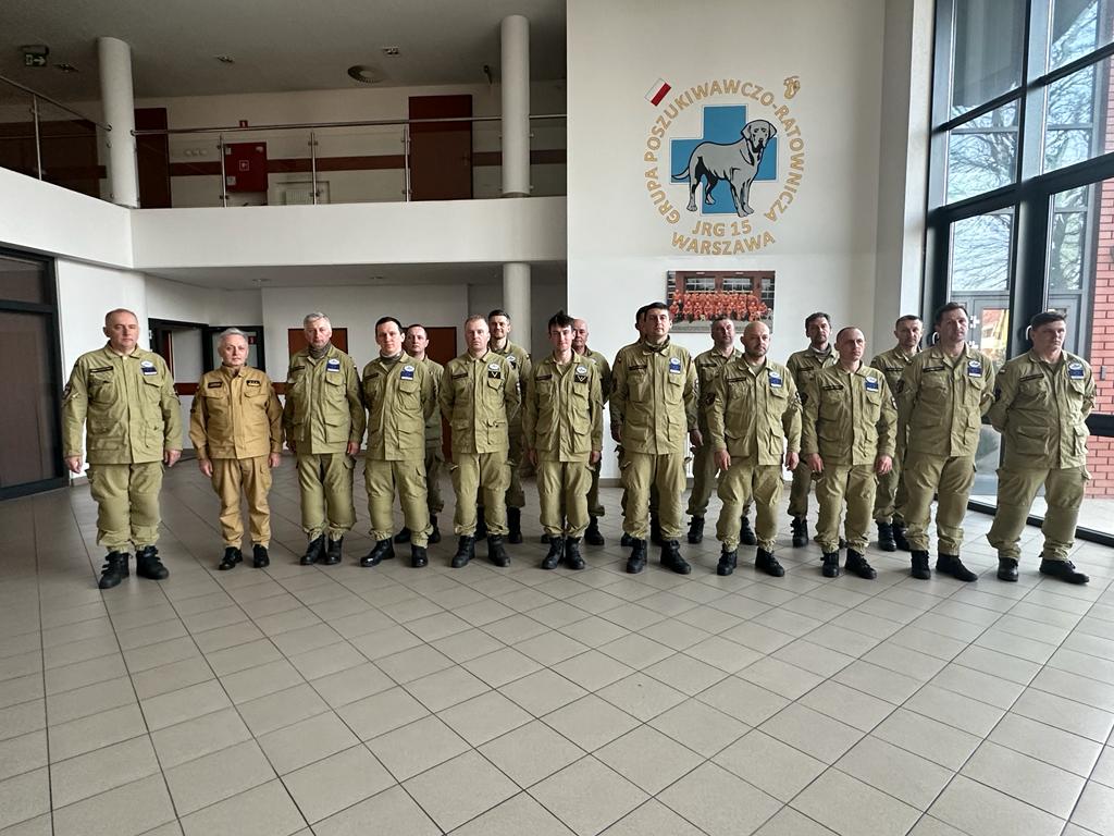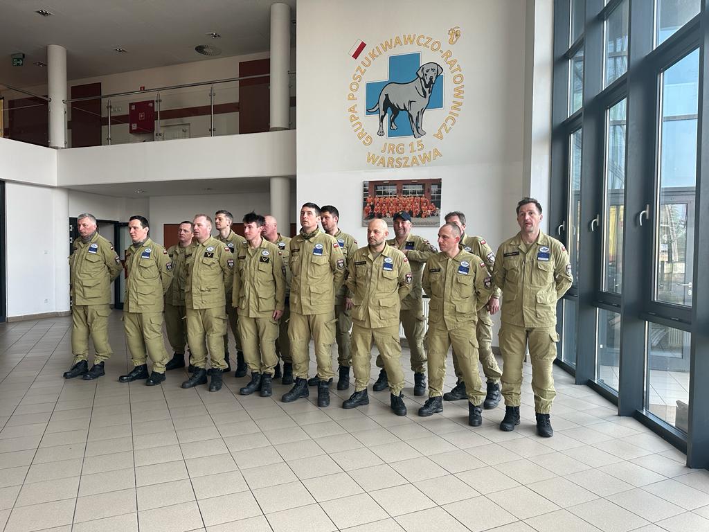 16 lutego 2023 roku w godzinach popołudniowych warszawscy strażacy z ciężkiej grupy poszukiwawczo-ratowniczej, którzy brali udział w działaniach ratowniczych po trzęsieniu ziemi w Turcji, powrócili do swojej jednostki – JRG nr 15 Komendy Miejskiej PSP m.st. Warszawy. Przywitał ich st. bryg. Jarosław Piotrowski Mazowiecki Komendant Wojewódzki PSP.