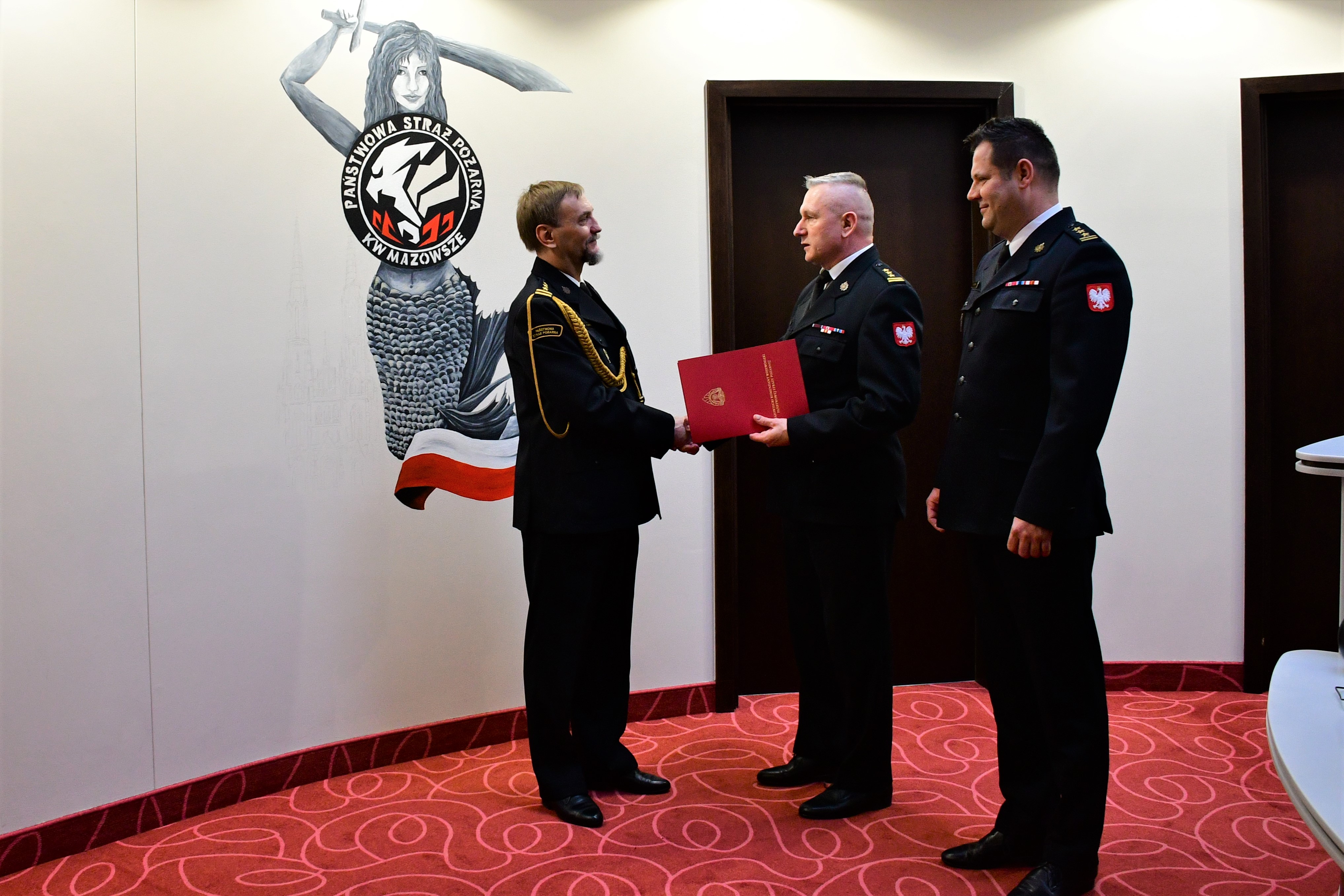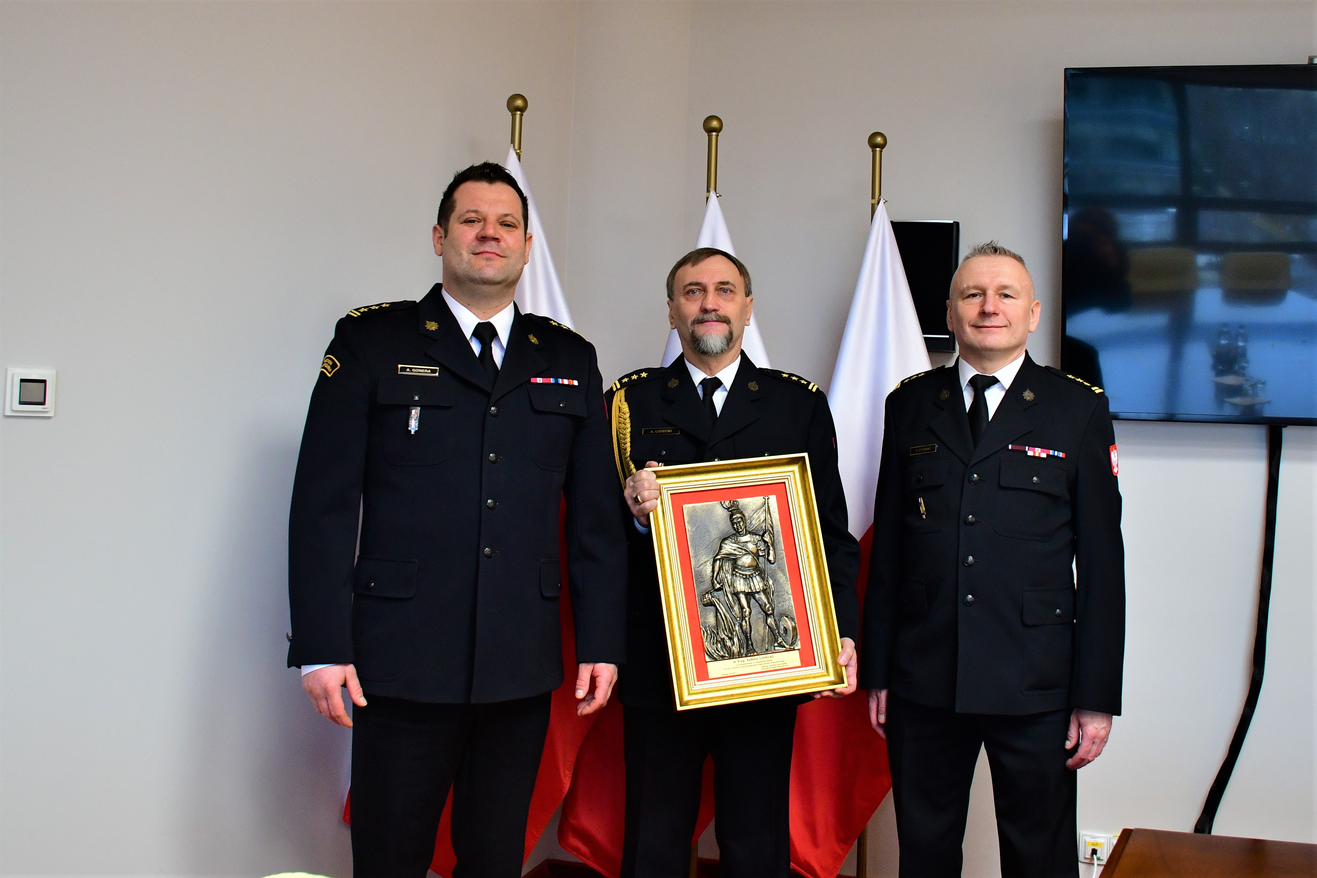 Podczas spotkania Zastępcy Mazowieckiego Komendanta Wojewódzkiego PSP st. bryg. Artur Gonera oraz st. bryg. Dariusz Stumski, wraz z kadrą kierowniczą Komendy Wojewódzkiej PSP w Warszawie, złożyli na ręce st. bryg. Andrzeja Lisieckiego podziękowania za wkład i zaangażowanie włożone w służbę na rzecz ochrony przeciwpożarowej.