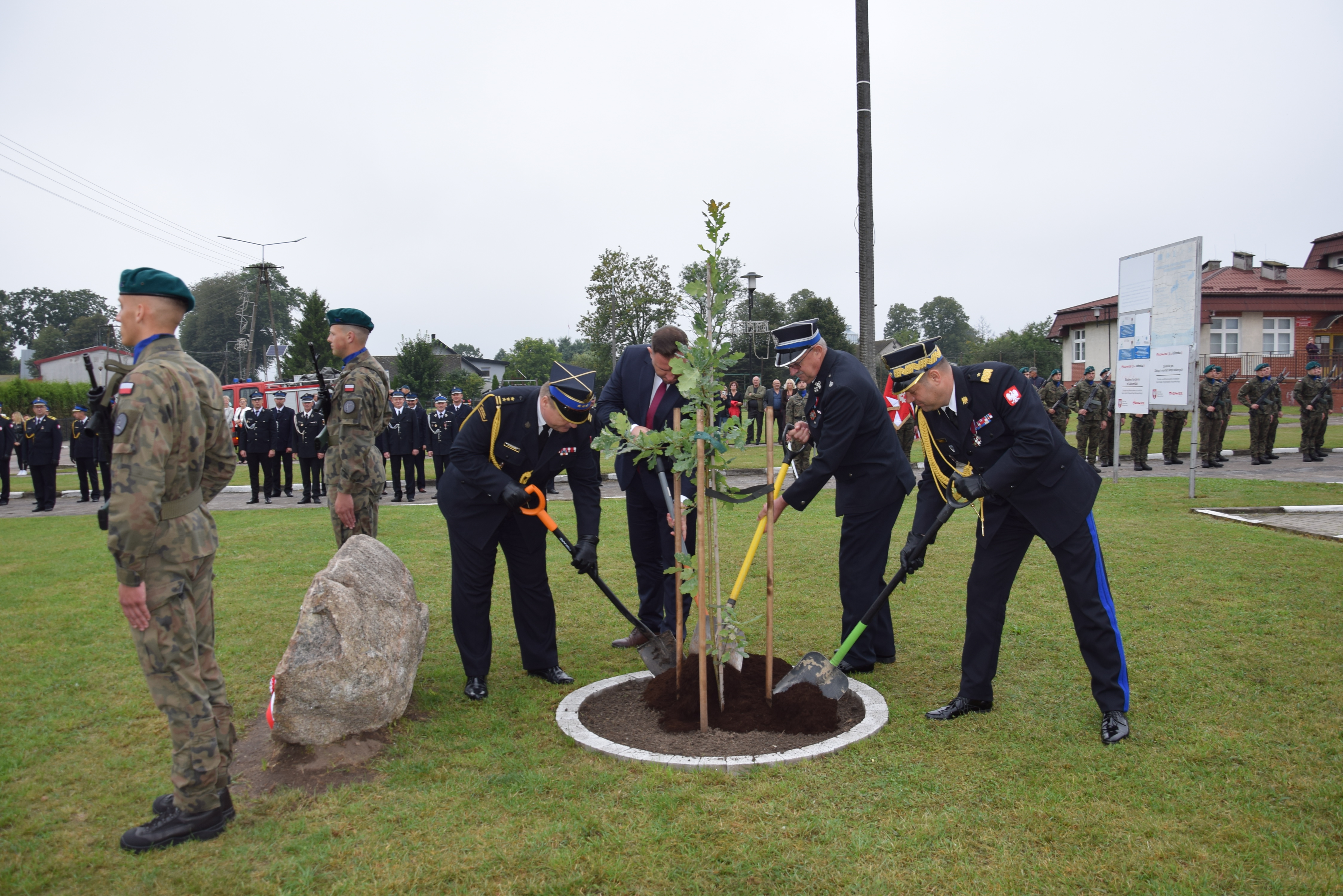 Posadzenie "Dębu Pamięci" i odsłonięcie tablicy pamiatkowej dla kpt. poż. Klemensa Jerki