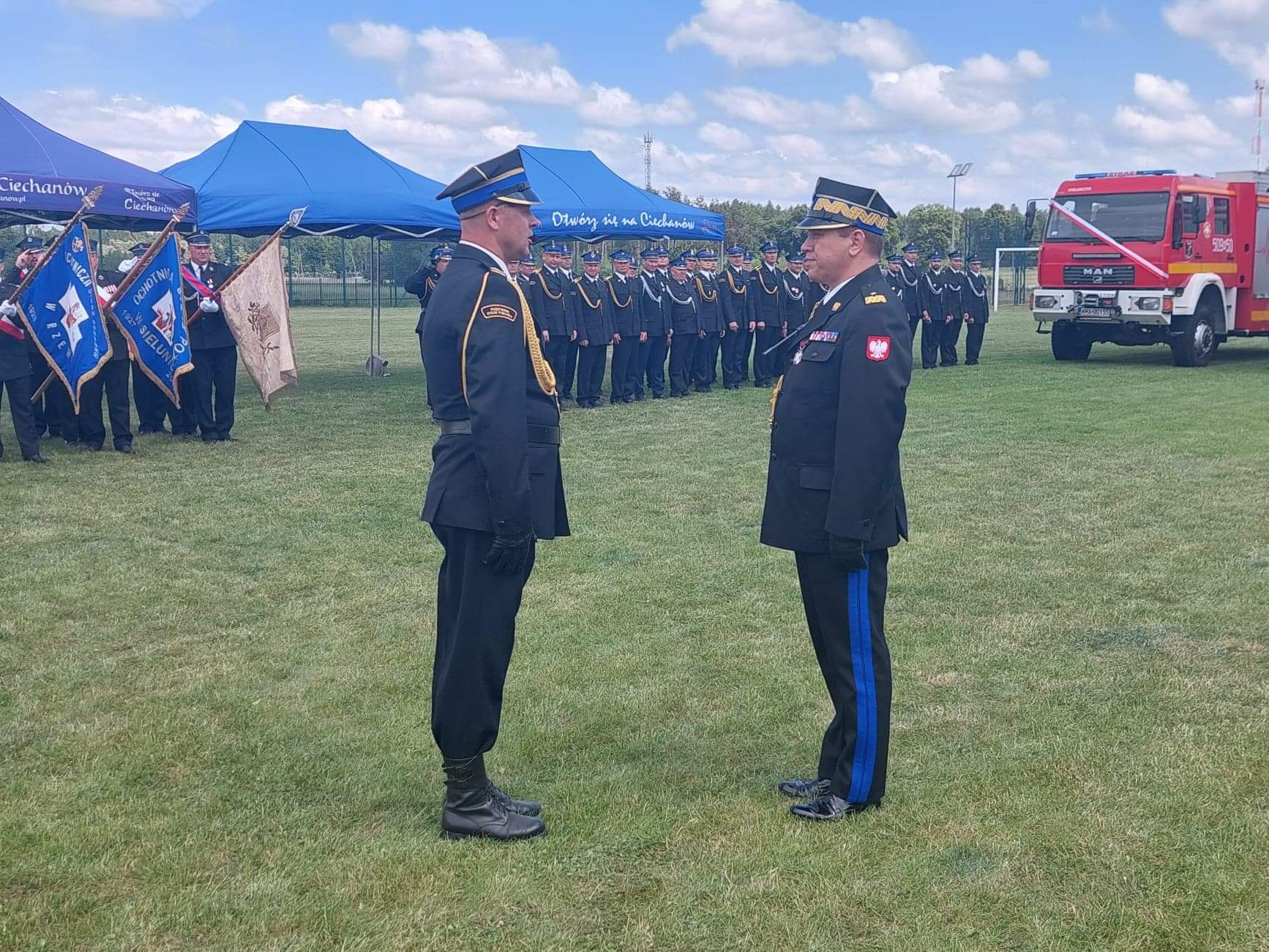 Podczas uroczystości nadbryg. Jarosława Nowosielski – Mazowiecki Komendant Wojewódzki Państwowej Straży Pożarnej dokonał uroczystego przekazania dwóch ciężkich samochodów ratowniczo-gaśniczych dla KP PSP w Makowie Mazowieckim oraz OSP Czerwonka. Poświęcenia nowego pojazdu dokonał ks. Jerzy Szymołon oraz ks. Roman Bagiński.
