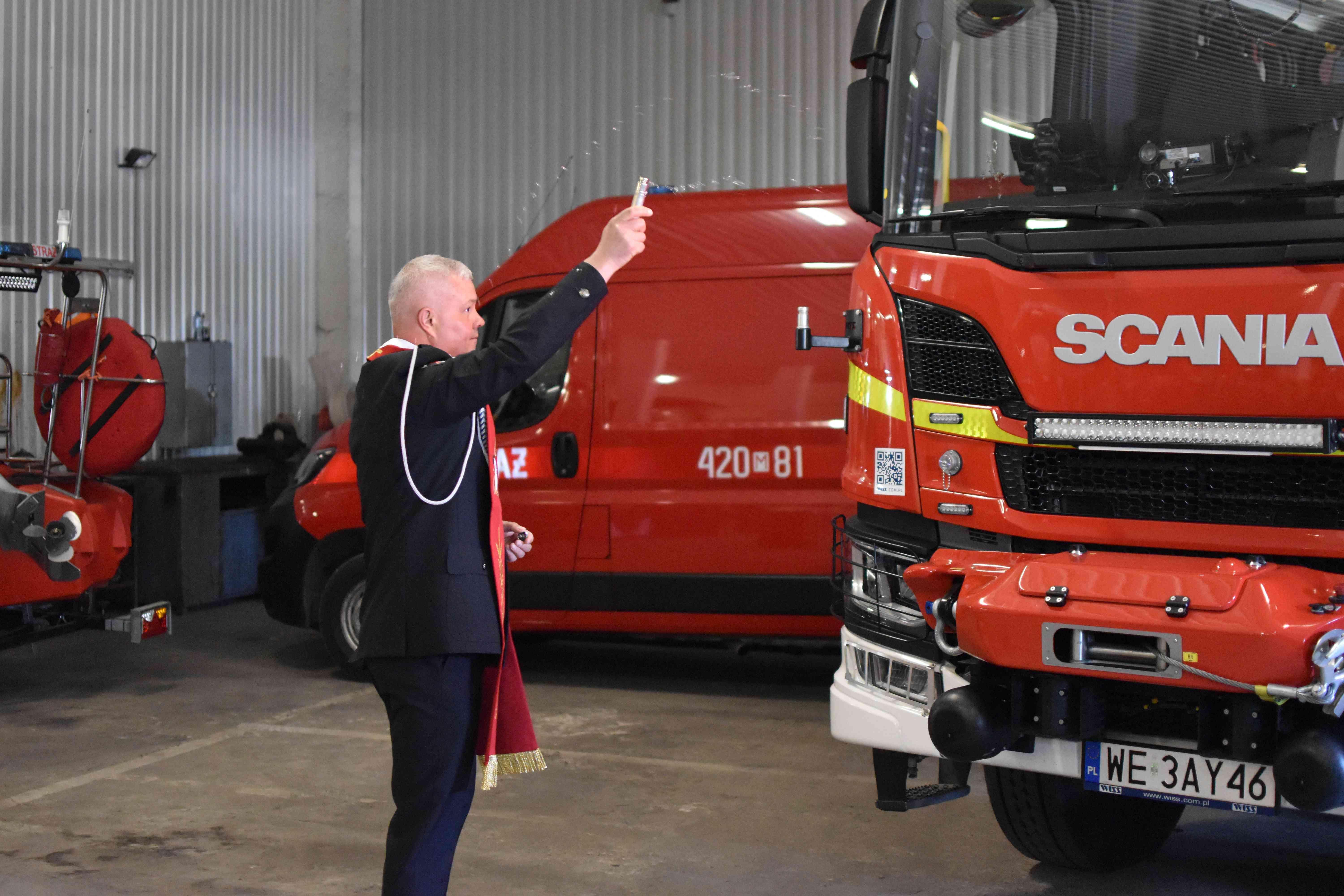 W dalszej kolejności nastąpiło przekazanie, a następnie poświecenie średniego samochodu ratowniczo-gaśniczego, którego dokonał powiatowy kapelan strażaków ks. Leszek Dąbrowski.