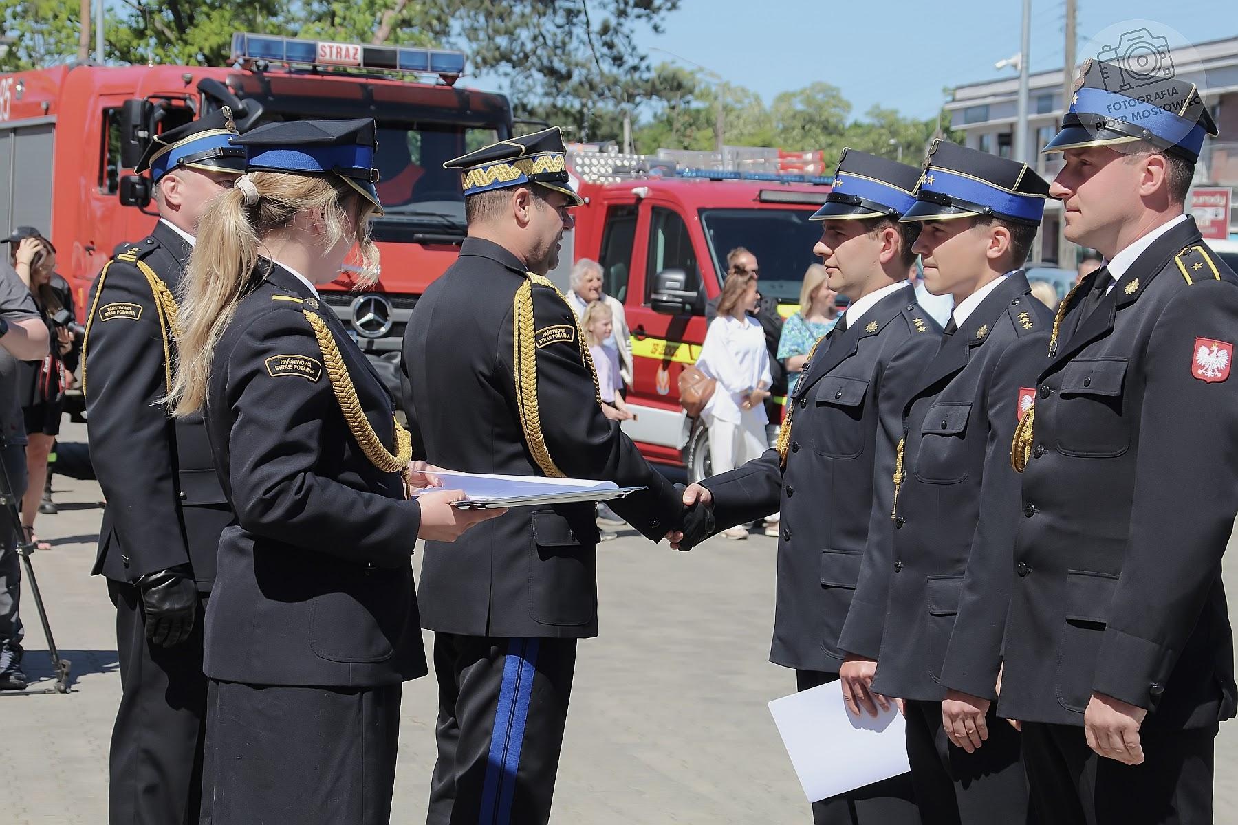 Następnie z okazji strażackiego święta, jak corocznie, wręczono odznaki, odznaczenia, nagrody oraz akty mianowania na wyższe stopnie służbowe dla funkcjonariuszy, pracowników cywilnych oraz druhów OSP. 4 maja jest szczególnie wyjątkowym dniem dla społeczności strażackiej. Radosny i świąteczny czas obchodów Międzynarodowego Dnia Strażaka jest okazją do podziękowania wszystkim oddanym tej niebezpiecznej, ale jakże pięknej służbie, a także do uhonorowania ich zasług, zaangażowania i codziennego poświęcenia.