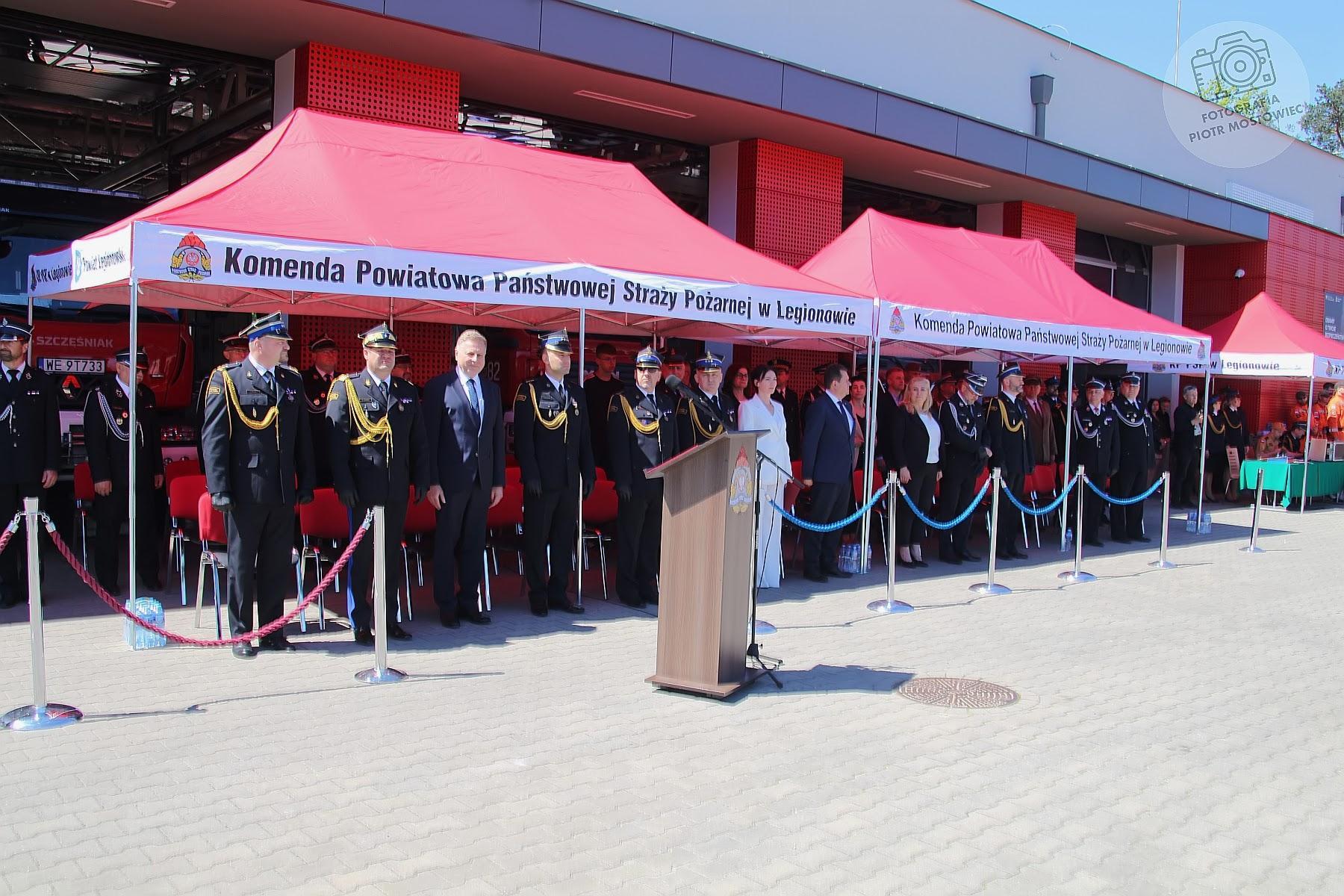 Po podniesieniu biało-czerwonej flagi i odśpiewaniu hymnu narodowego Komendant Powiatowy PSP w Legionowie mł. bryg. Karol Mendak przywitał wszystkich obecnych na uroczystości.