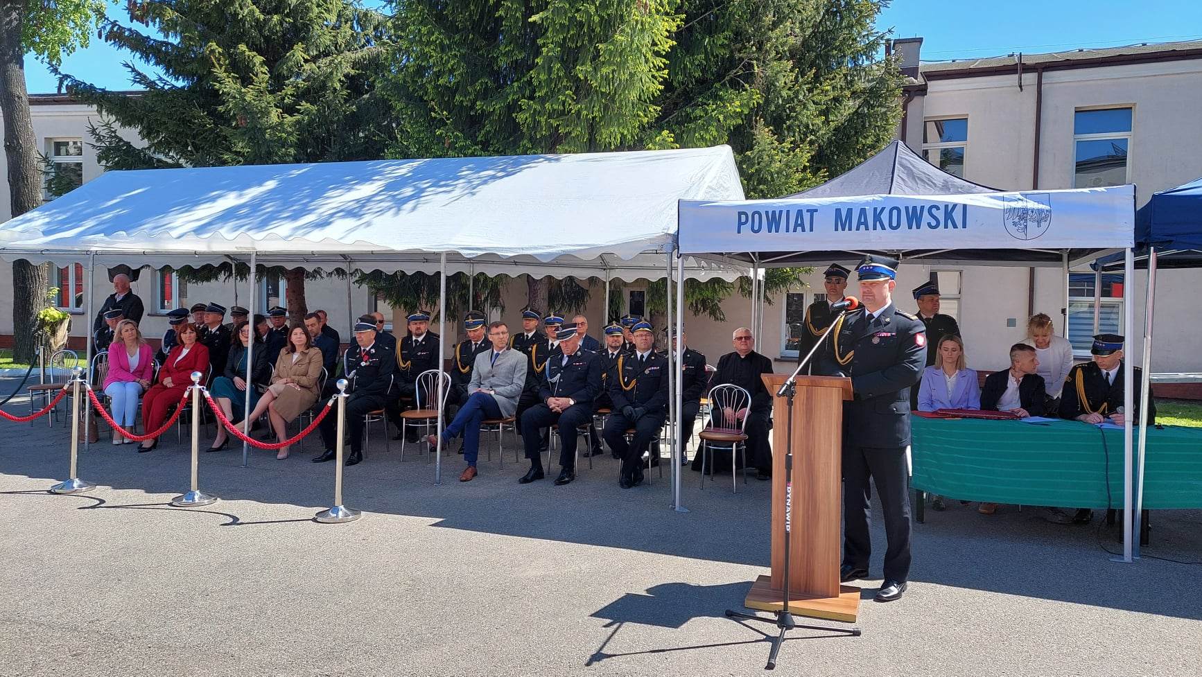 Po przemarszu pododdziałów na miejsce uroczystości – plac przed Komendą Powiatową PSP w Makowie Mazowieckim, dowódca uroczystości mł. kpt. Dariusz Ostrowski złożył meldunek Zastępcy Mazowieckiego Komendanta Wojewódzkiego PSP st. bryg. Tomaszowi Cybul. Następnie podniesiono flagę państwową na maszt oraz odegrano hymn narodowy. Komendant Powiatowy PSP w Makowie Mazowieckim mł. bryg. Cezary Pałubiński przywitał wszystkich obecnych.