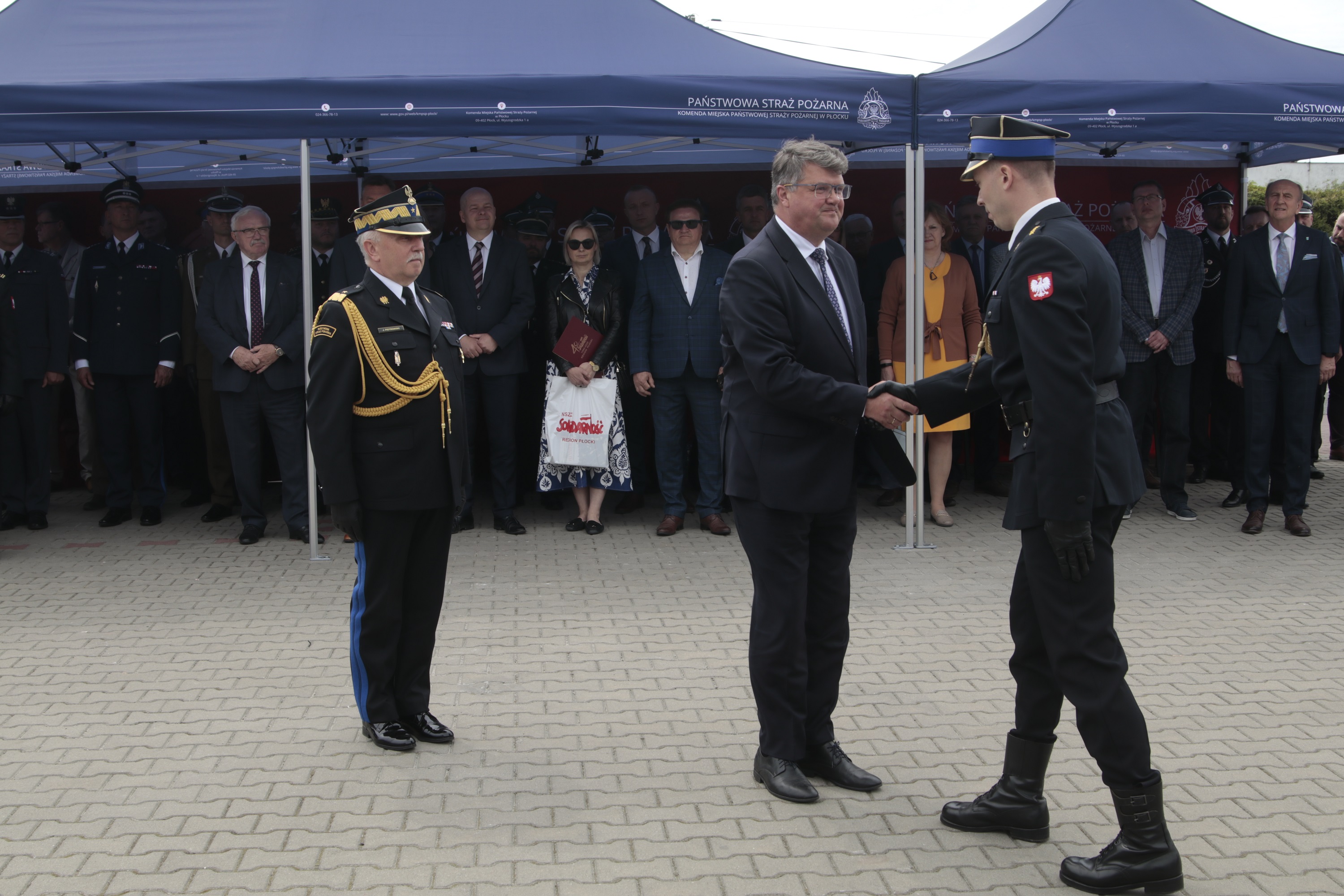 Obecny na uroczystości Pan Maciej Wąsik Sekretarz Stanu w Ministerstwie Spraw Wewnętrznych i Administracji przekazał w postaci symbolicznych aktów 6 pojazdów pożarniczych. Dwa z nich trafiły do Komendy Miejskiej Państwowej Straży Pożarnej w Płocku, cztery kolejne przekazane zostały do Ochotniczych Straży Pożarnych z terenu powiatu płockiego.