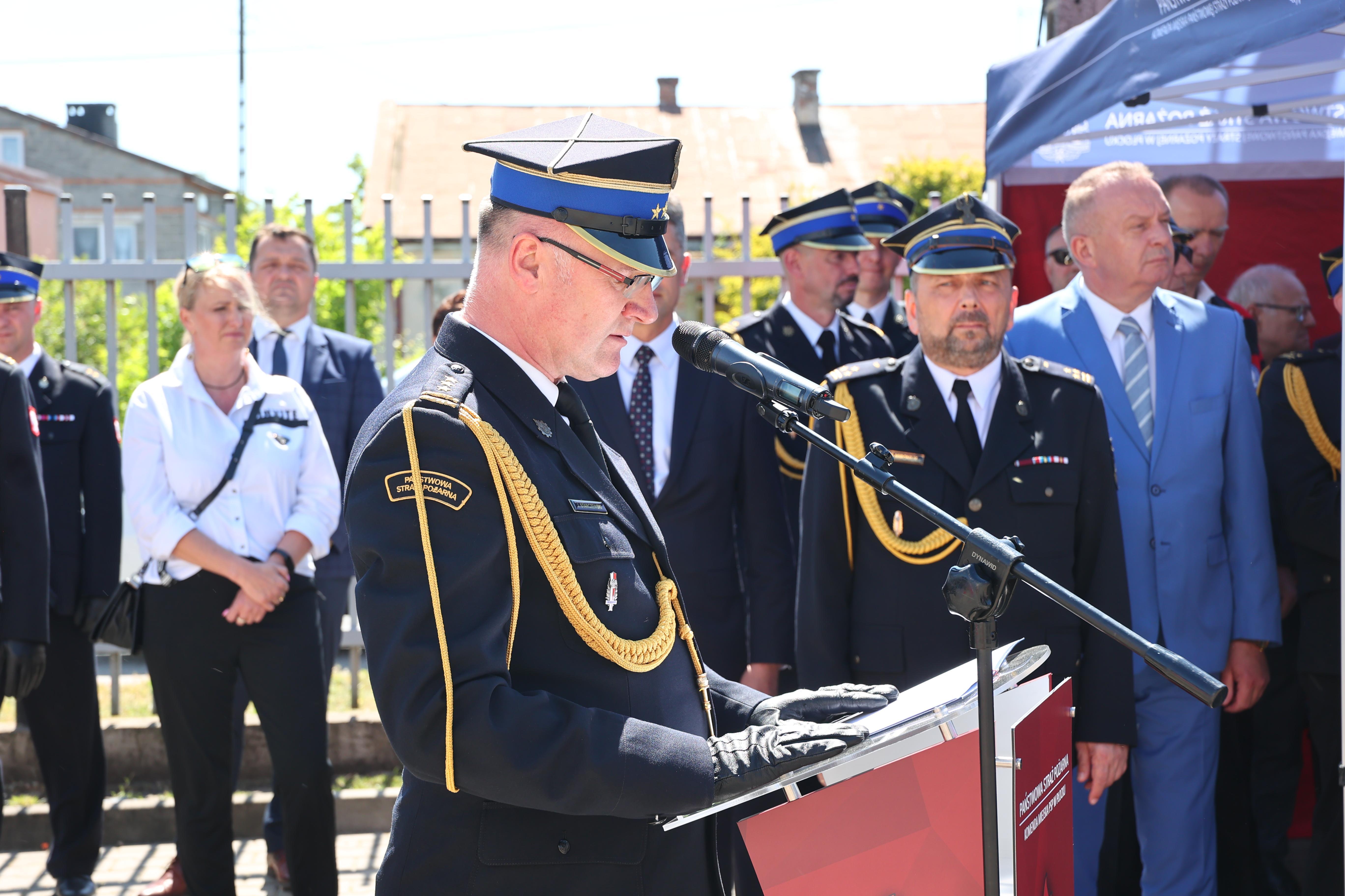 Komendant Miejski Państwowej Straży Pożarnej w Płocku wygłosił okolicznościowe przemówienie, w którym podziękował wszystkim współdziałającym i współpracującym z płocką jednostką straży pożarnej.