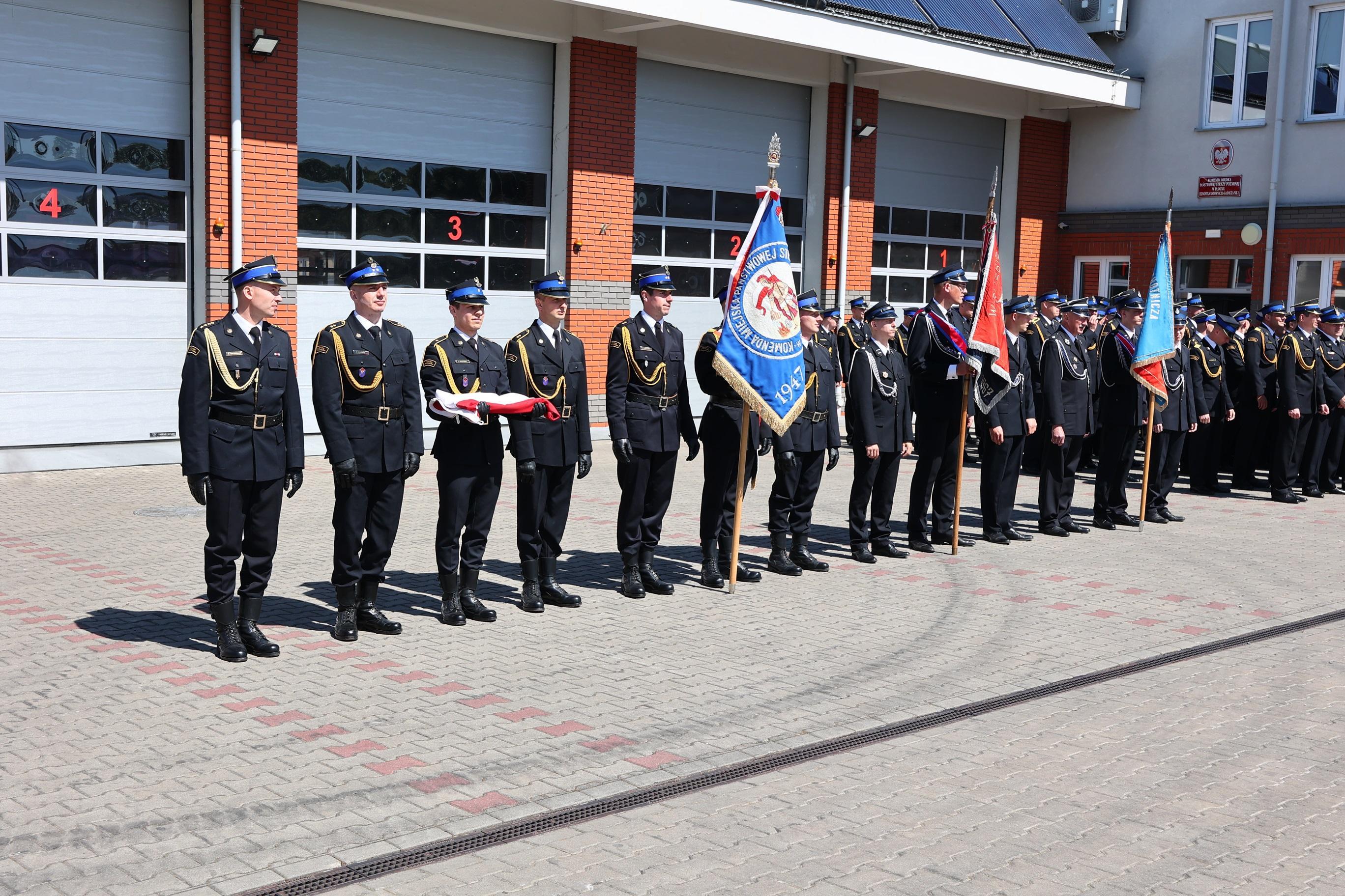Uroczysty apel rozpoczęto złożeniem meldunku nadbryg. Arturowi Gonerze Mazowieckiemu Komendantowi Wojewódzkiemu Państwowej Straży Pożarnej przez st. kpt. Michała Żółtowskiego dowódcę uroczystości. Następnie podniesiono flagę państwową i odegrano hymn Państwowy.