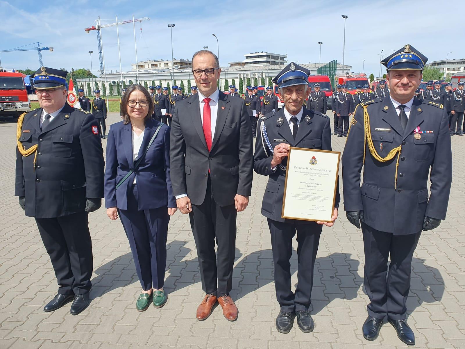 Uroczystość była również okazją do wręczenia przez Zastępcę Mazowieckiego Komendanta Wojewódzkiego PSP st. bryg. Macieja Bieńczyka Decyzji Komendanta Głównego PSP o włączeniu jednostki OSP w Radzyminie gm. Naruszewo do Krajowego Systemu Ratowniczo-Gaśniczego, którą odebral Prezes jednostki.