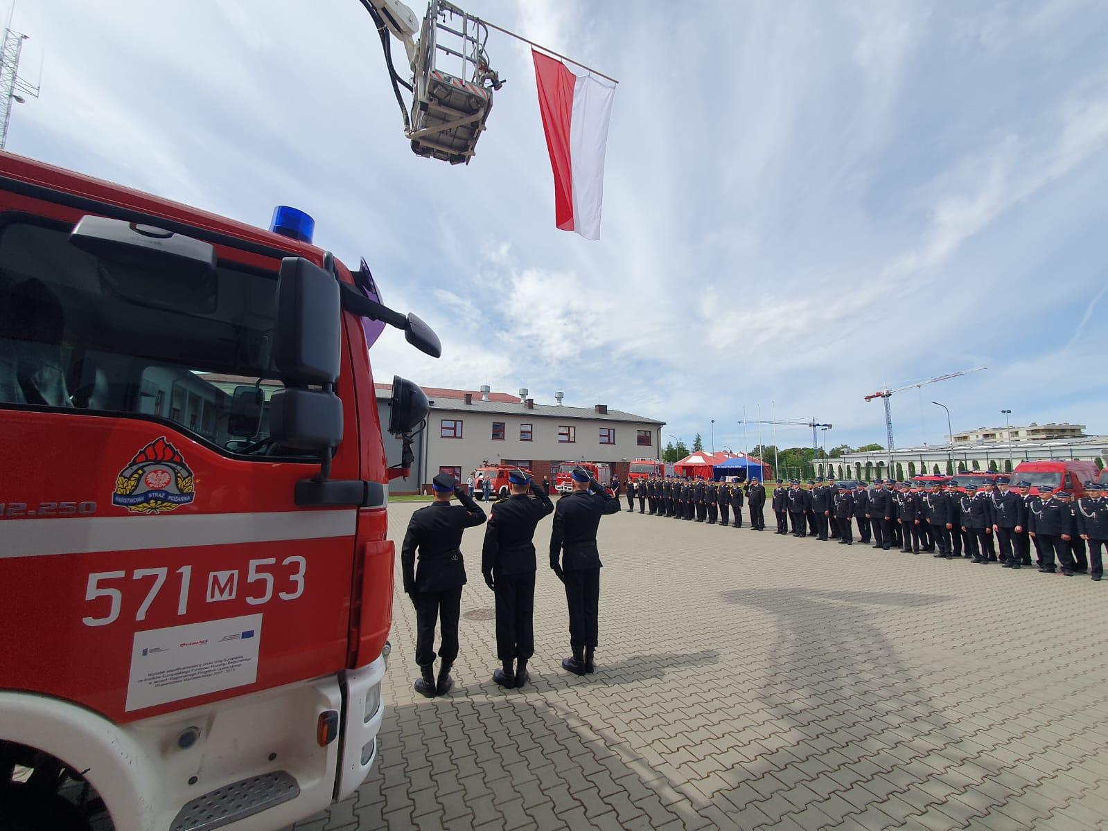 Apel rozpoczął się od złożenia meldunku przez st. kpt. Roberta Rudzińskiego st. bryg. Maciejowi Bieńczykowi - Zastępcy Mazowieckiego Komendanta Wojewódzkiego PSP. Następnie podniesiono flagę państwową oraz odegrano hymn narodowy.